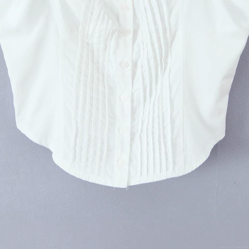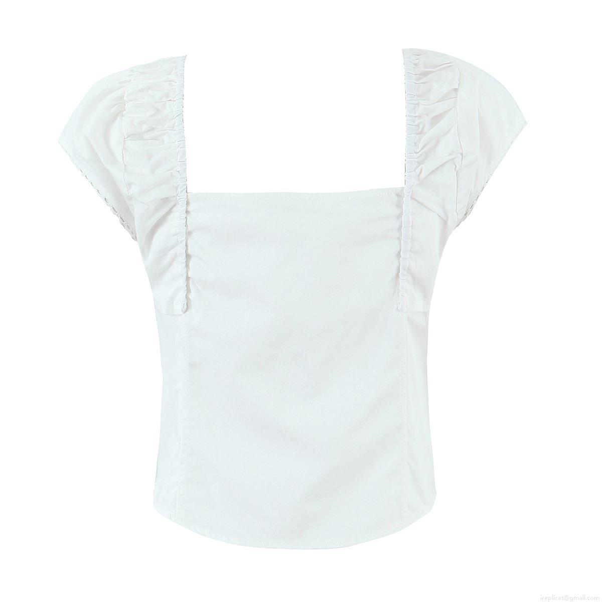 • Women's French Style Square Neck Pleated T-Shirt Slim Fit Cotton Short Sleeve Button Down Top For Summer Streetwear Fashion