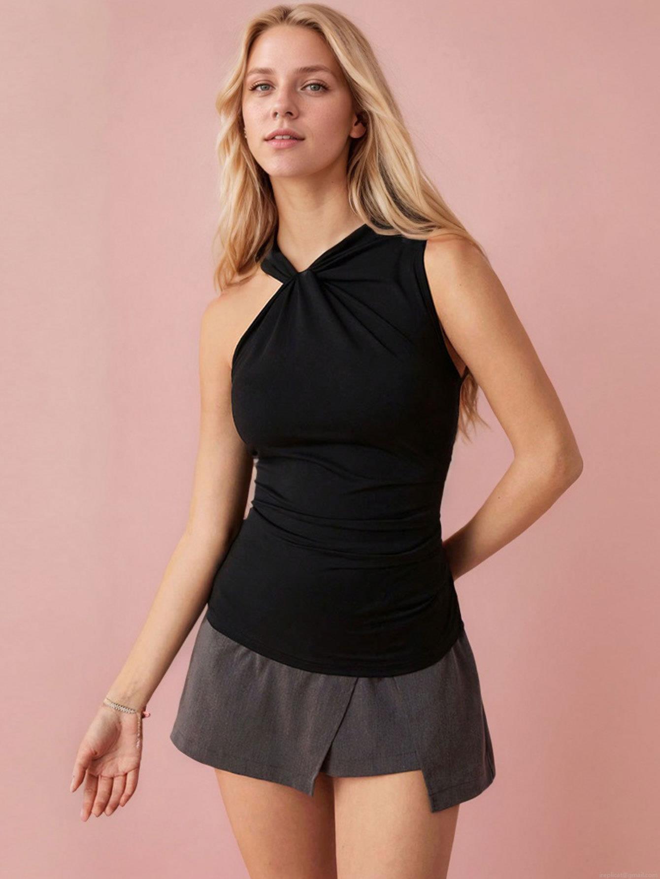 • Women's Halter Neck Sleeveless T-Shirt Knot Detail Off-Shoulder Slim Fit Summer Top 95% Polyester 5% Elastane Casual Streetwear Sexy Vest for Lady