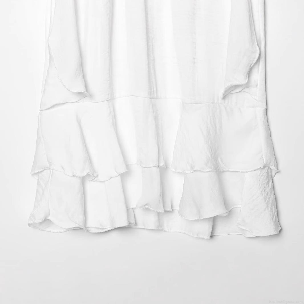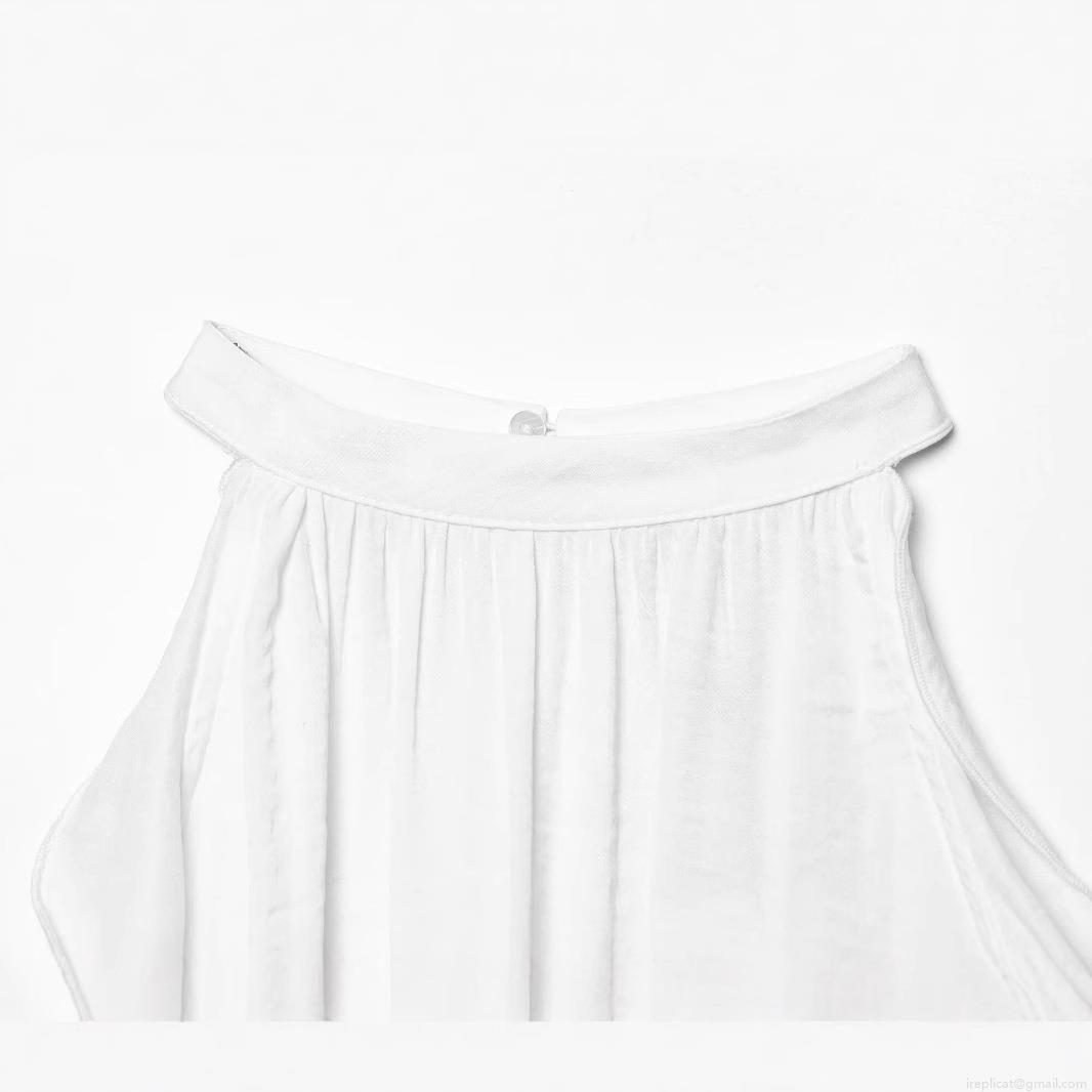 • Women's Halter Neck Sleeveless T-Shirt Layered Ruffle Hem Solid White Polyester Top Summer Casual Elegant Streetwear Off-Shoulder Blouse for Women