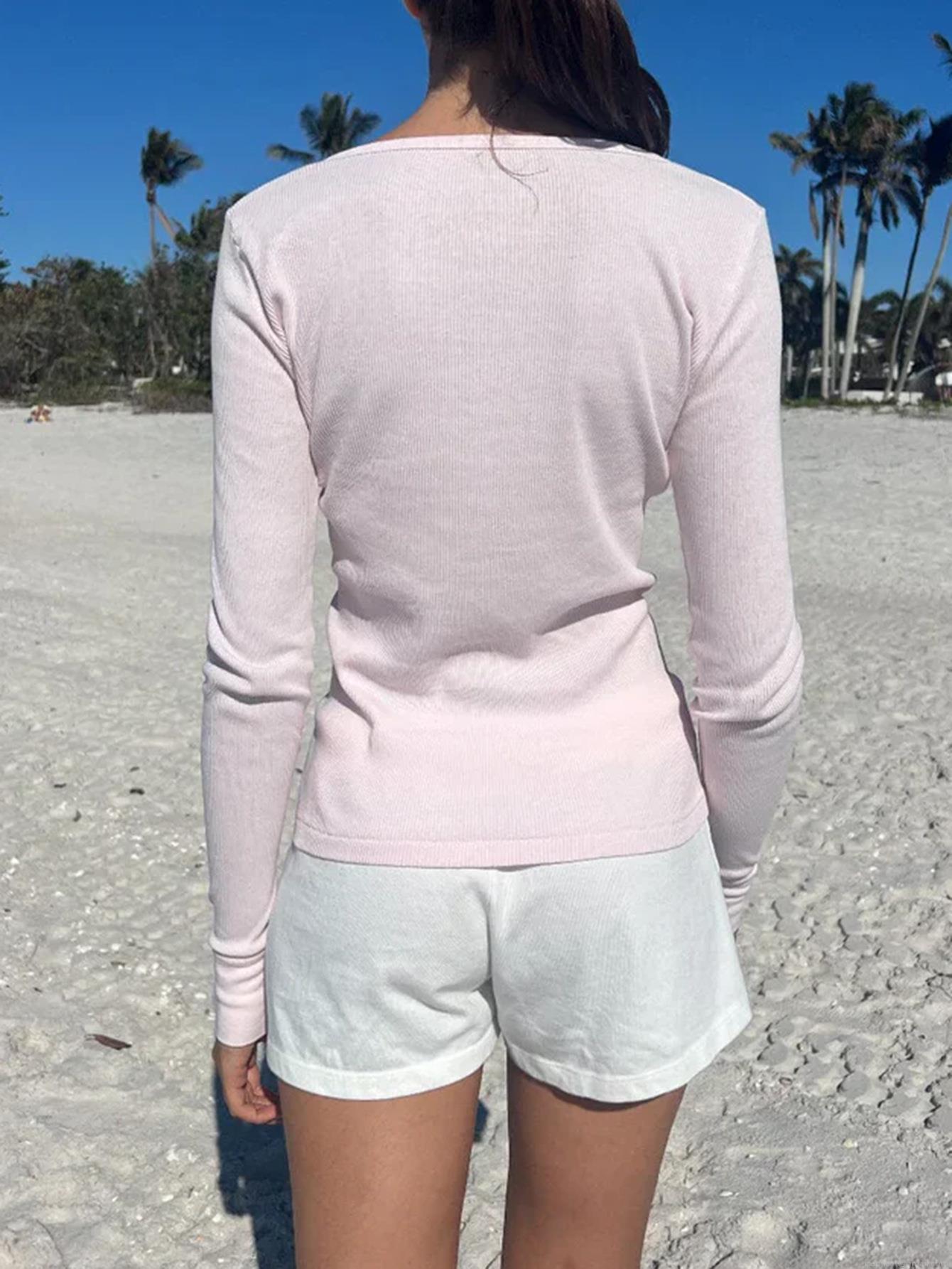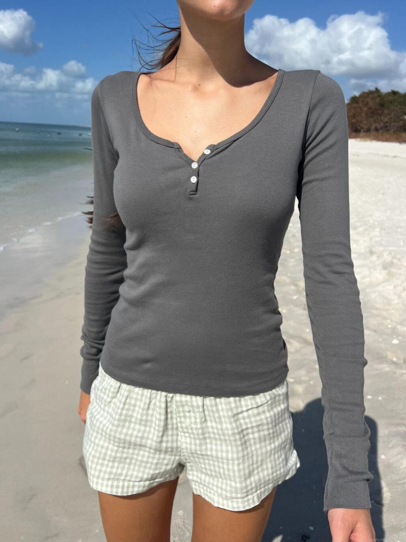 • Women's Henley Neck Long Sleeve T-Shirt Ribbed Knit Viscose Spandex Slim Fit Button Front Solid Color Casual Basic Base Layer Top Autumn Winter