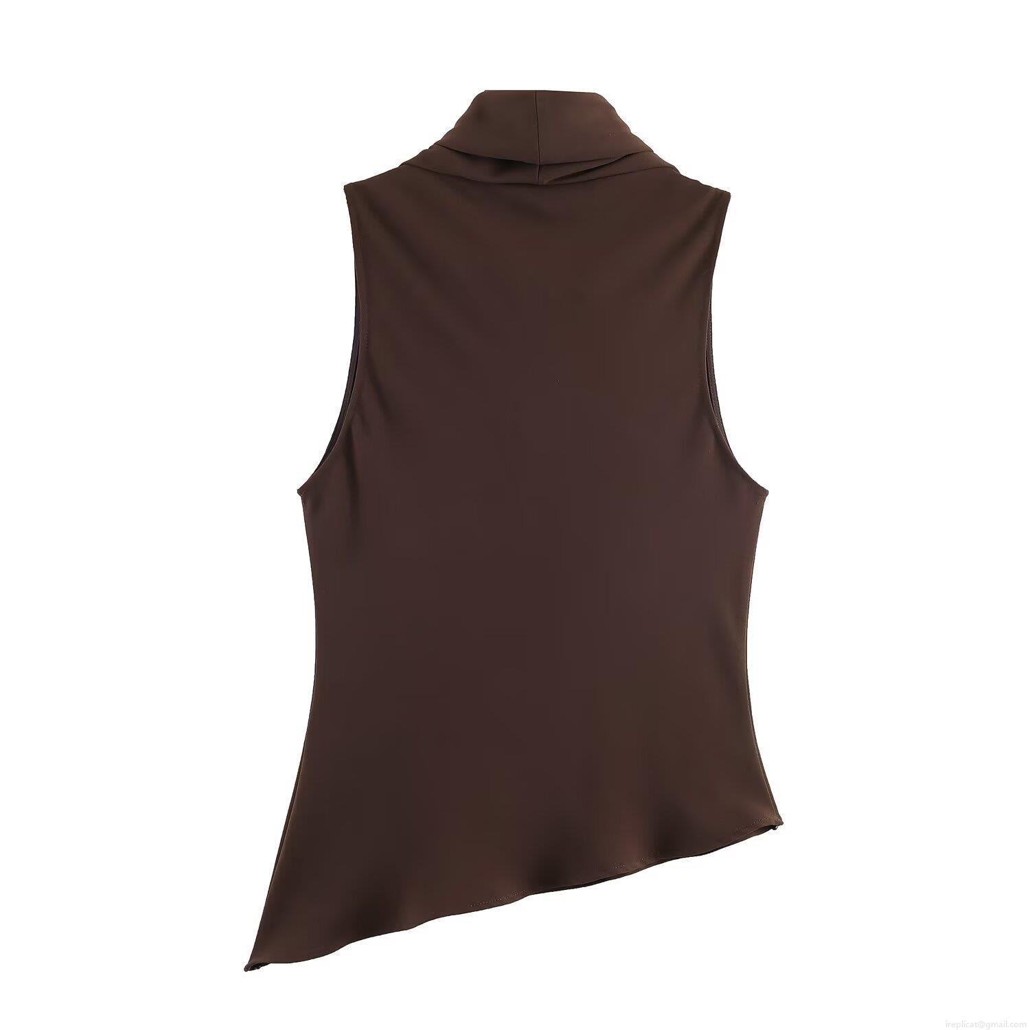 • Women's High Neck Asymmetric Hem Top Sleeveless Polyester Spandex Solid Color Casual Cowl Neck Blouse For Daily Dating Simple Fashion Tank Top