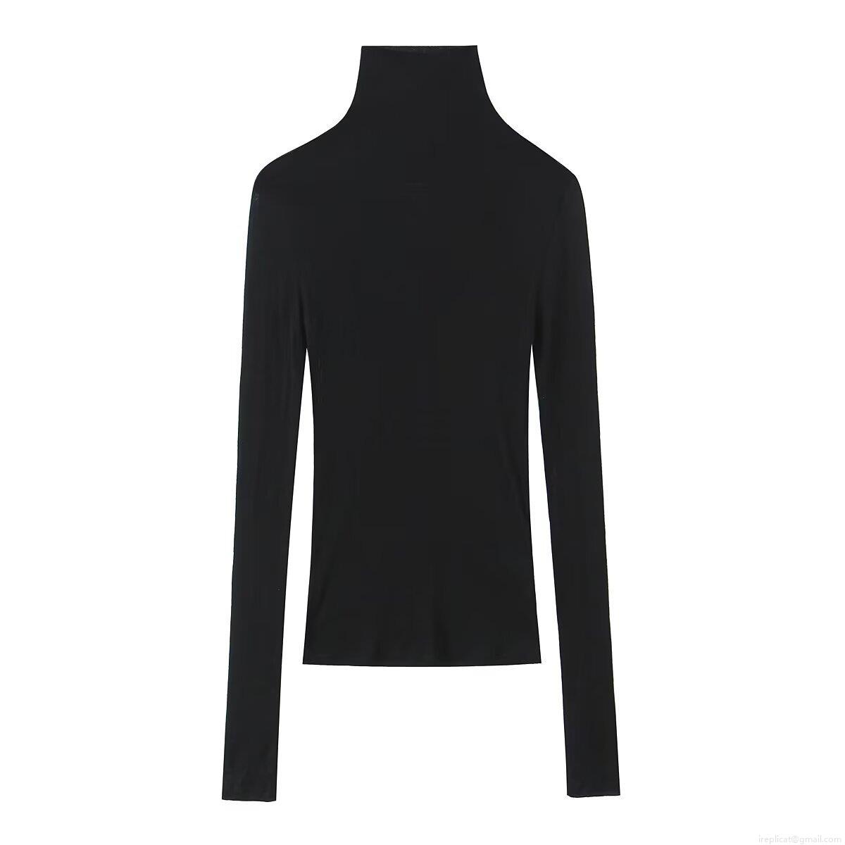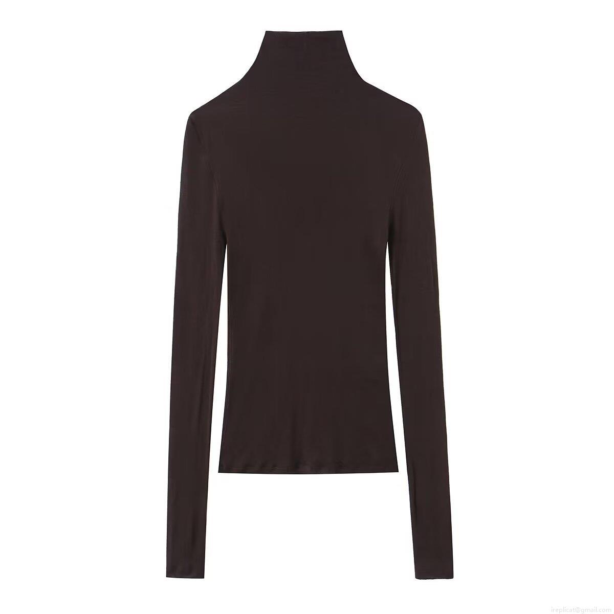• Women's High Neck Slim Fit Long Sleeve T-Shirt Solid Color Mock Neck Base Layer Top Casual Stretchy Tee Autumn Winter Clothing