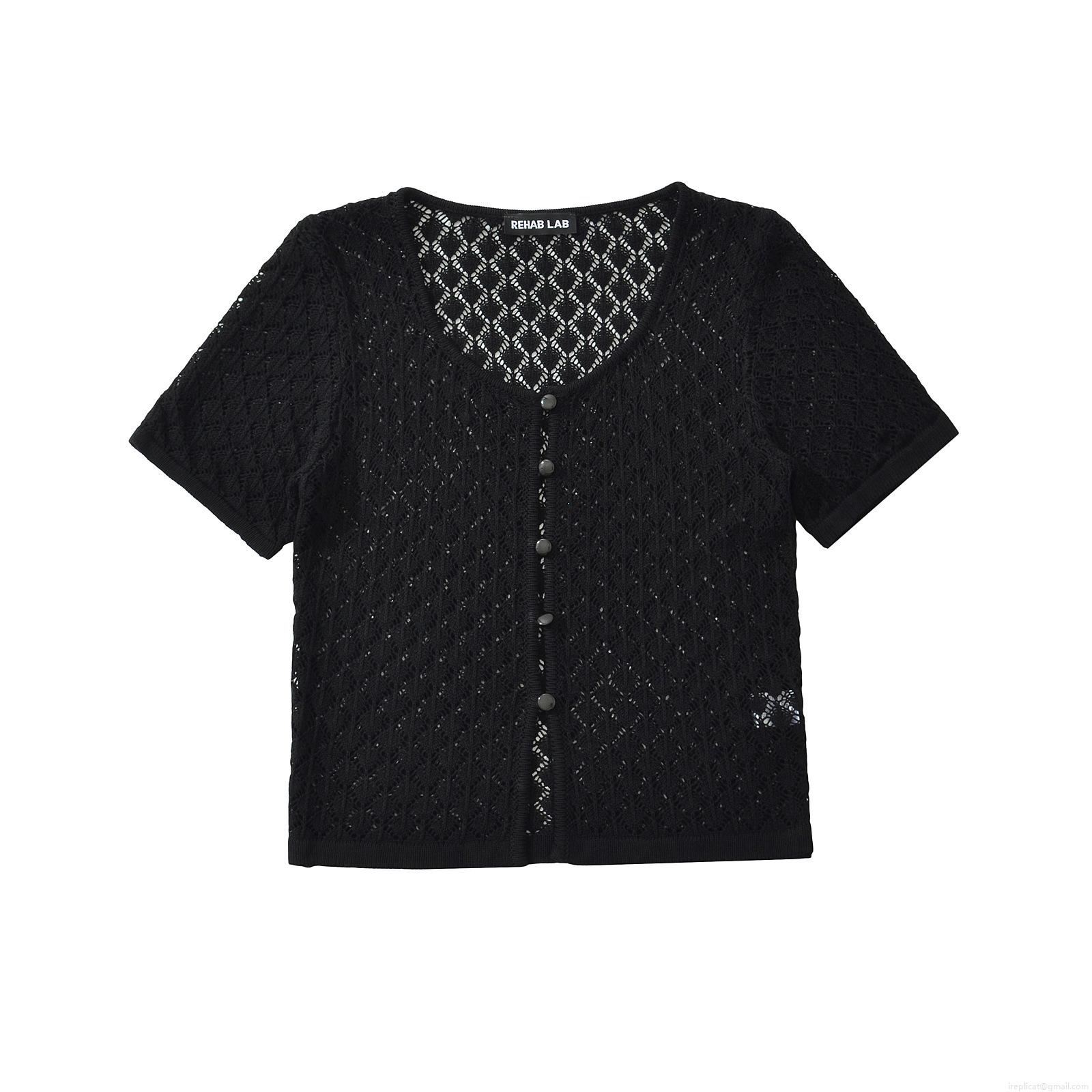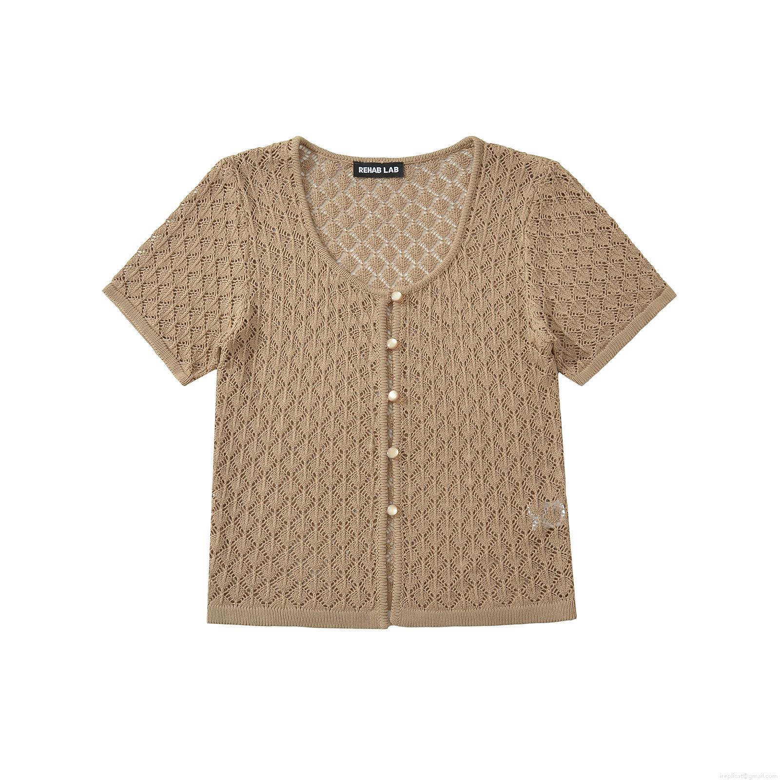 • Women's Hollow Out Knitted Cardigan Top Short Sleeve Round Neck Single Breasted Crochet T-Shirt Sexy Slim Fit Summer Knitwear For Women