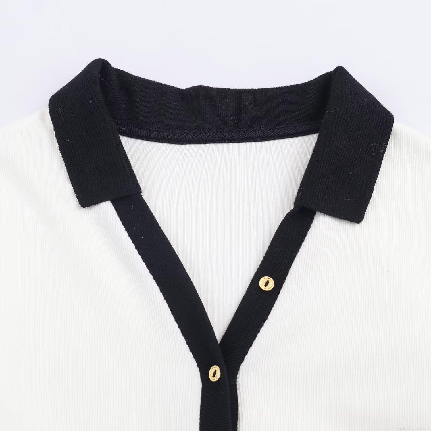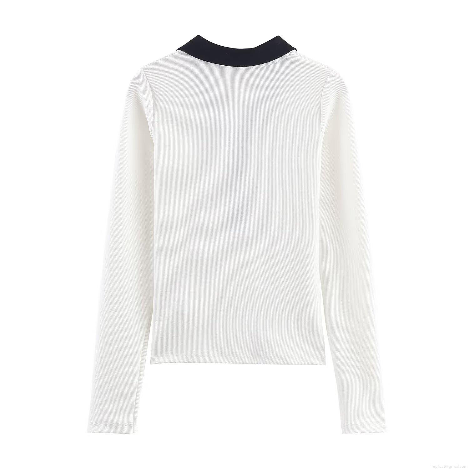 • Women's Long Sleeve Polo Knit T-Shirt Polyester Spandex Ribbed Texture Contrast Color Collar Slim Fit Pullover Casual Daily Fashion Tops For Women