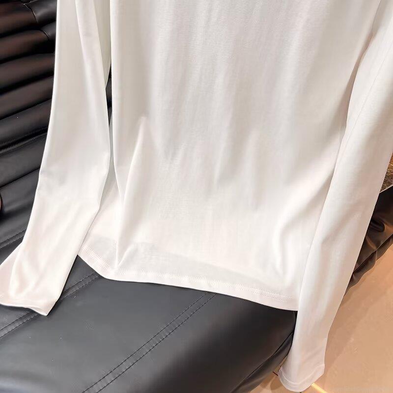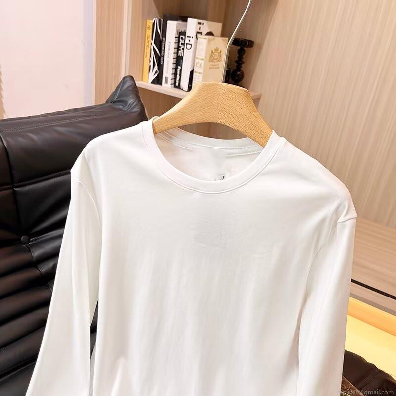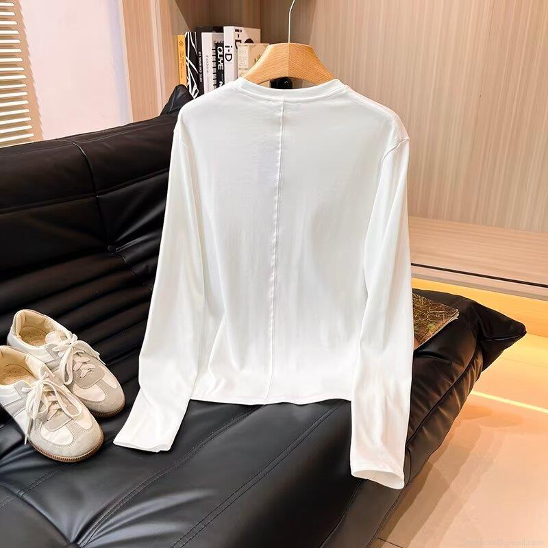 • Women's Long Sleeve Round Neck T-Shirt Made Of 95% Cotton And 5% Spandex Minimalist Solid Color Casual Basic Top For Fall Daily Wear