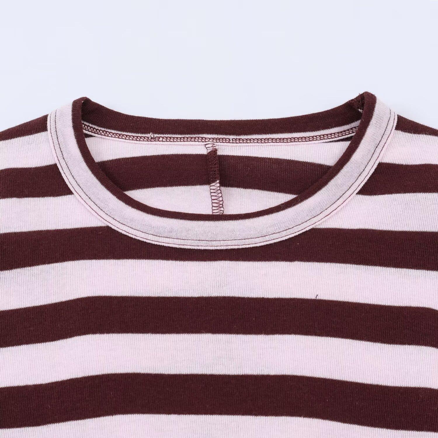 • Women's Long Sleeve Striped Crop Top Round Neck Ribbed Knit T-Shirt Casual Streetwear Slim Fit Pullover Top Fashion Striped Clothing For Women