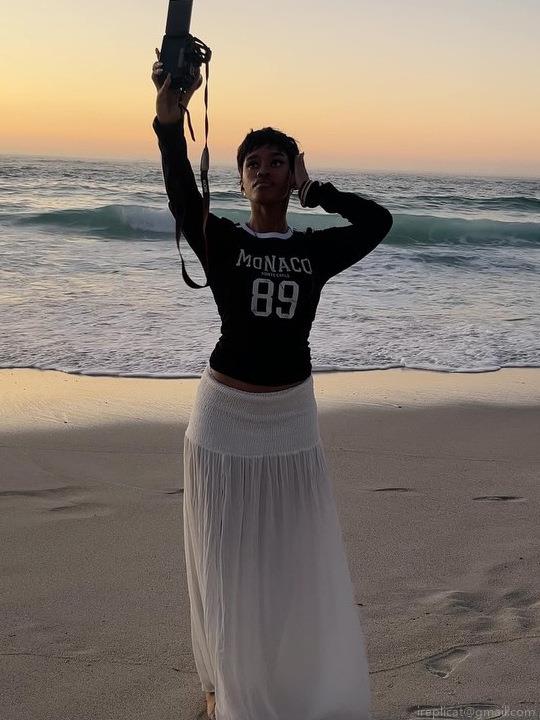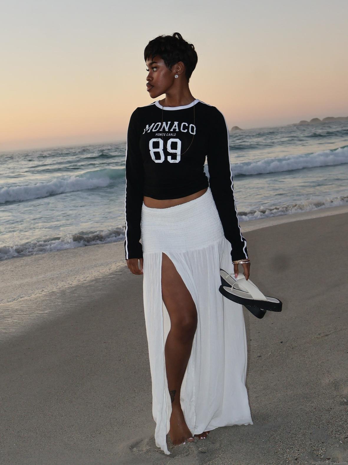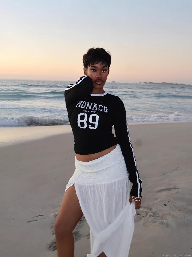 • Women's Long Sleeve T-Shirt Cotton Blend Monaco 89 Letter Print Stripe Slim Fit Round Neck Casual Streetwear Pullover Top