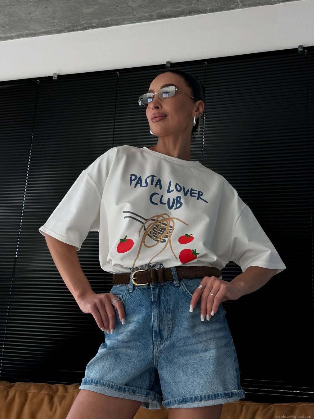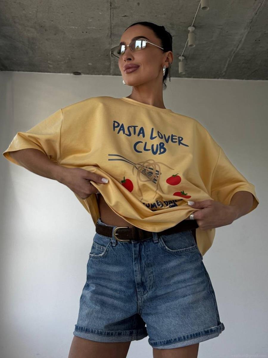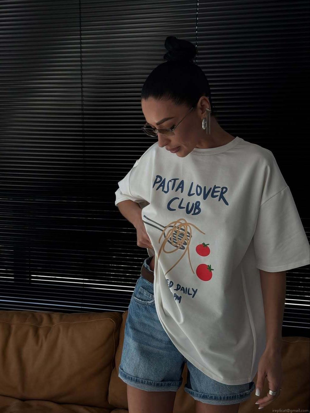 • Women's Loose Cotton Short Sleeve T-Shirt Pasta Lover Club Graphic Print Casual Summer Crew Neck Tee Top