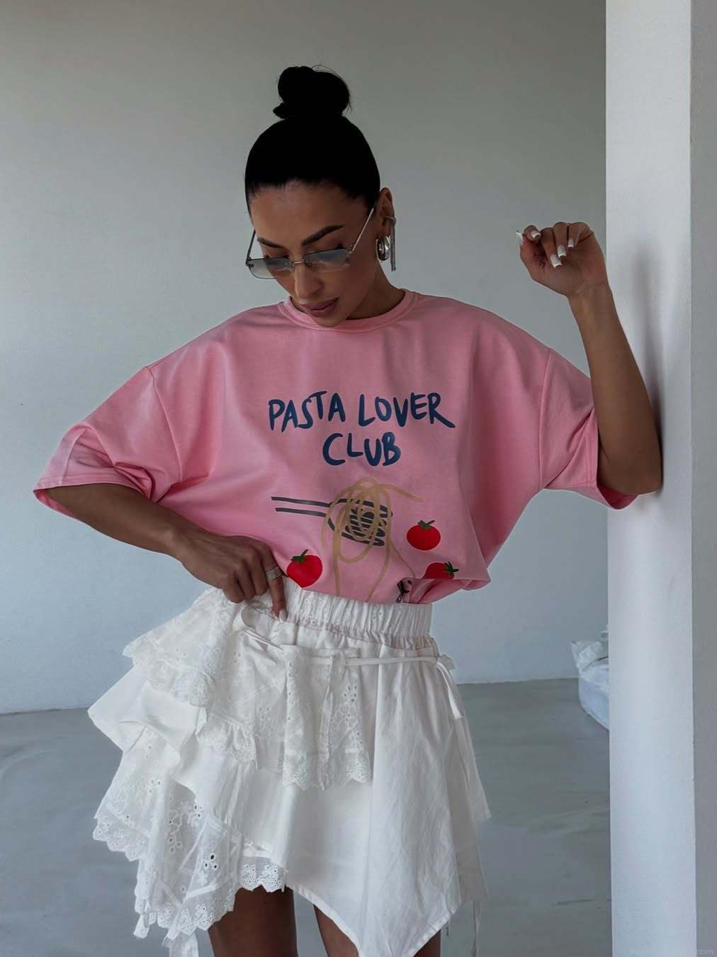 Women's Loose Cotton Short Sleeve T-Shirt Pasta Lover Club Graphic Print Casual Summer Crew Neck Tee Top