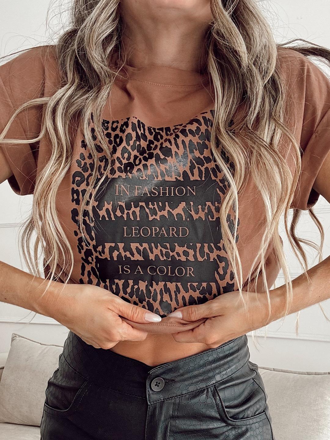 Women's Loose Leopard Print Short Sleeve T-Shirt Cotton Blend Round Neck Slogan Casual Streetwear Top In Fashion Leopard Is A Color Tee