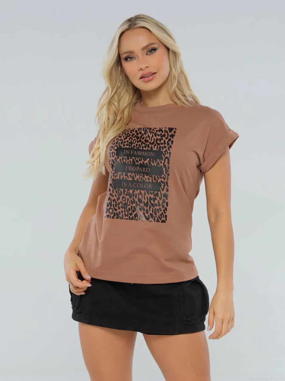 • Women's Loose Leopard Print Short Sleeve T-Shirt Cotton Blend Round Neck Slogan Casual Streetwear Top In Fashion Leopard Is A Color Tee