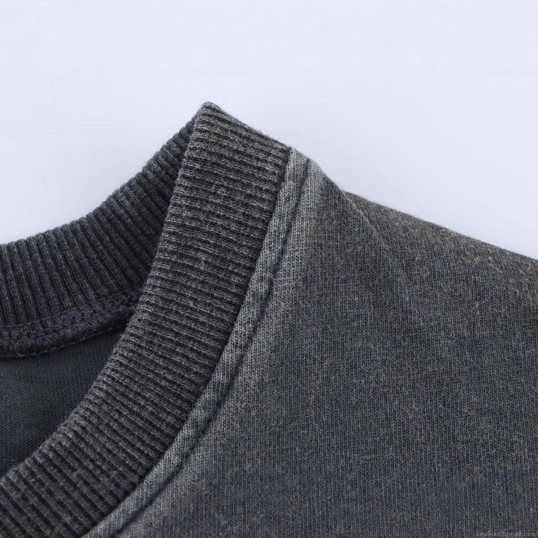 Women's Loose Long Sleeve T-Shirt Washed Dark Grey Cotton Blend Ruffle Patchwork Pullover Top Streetwear Style Casual Wear