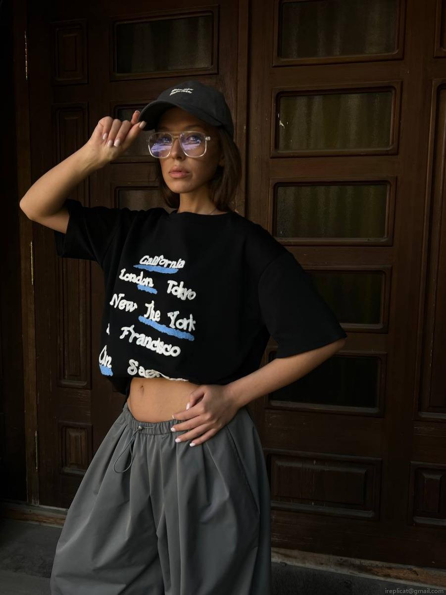 Women's Loose Short Sleeve T-Shirt Cotton Blend Breathable Round Neck Embroidered City Letters Summer Streetwear Casual Fashion Top Comfortable Tee for Ladies