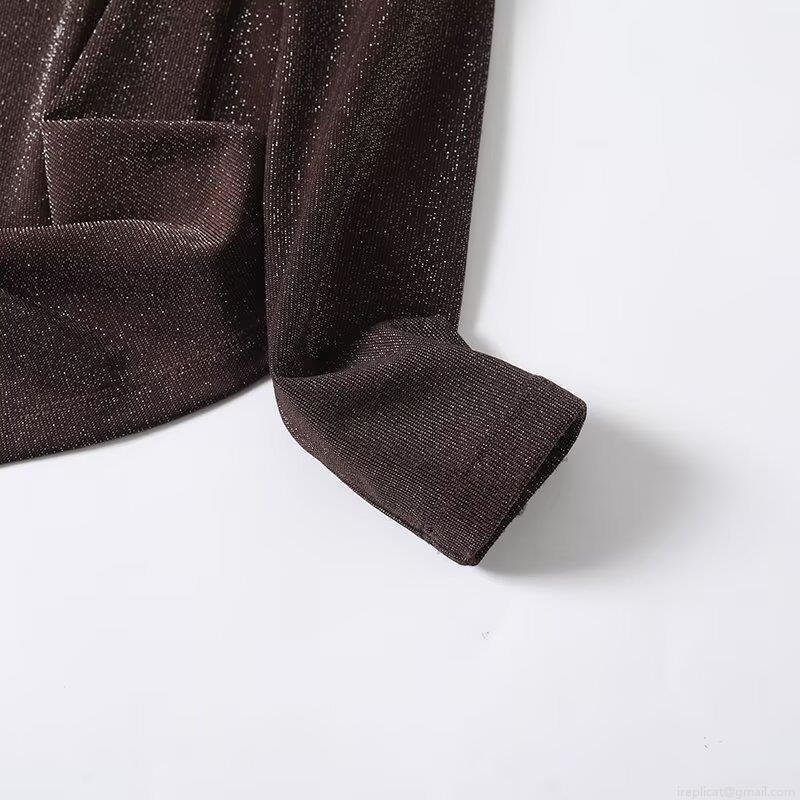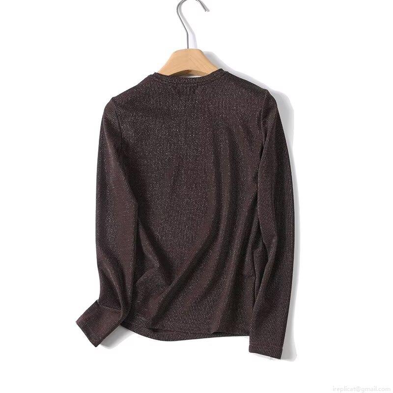 • Women's Metallic Shiny T-Shirt Long Sleeve Slim Fit Round Neck Deep Brown Casual Fashion Pullover Top Made Of Nylon Spandex And Silver Thread Soft Elegant Apparel