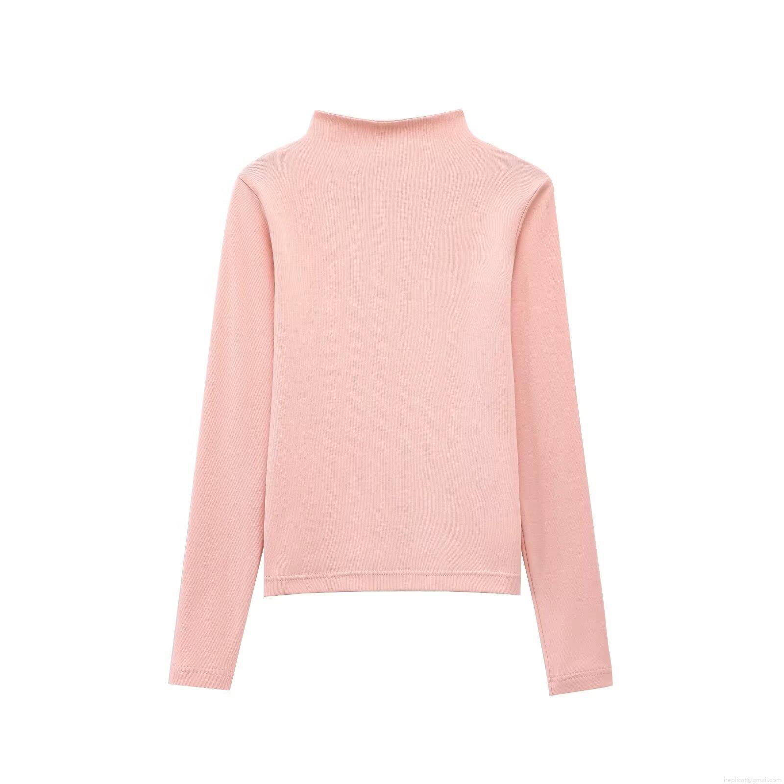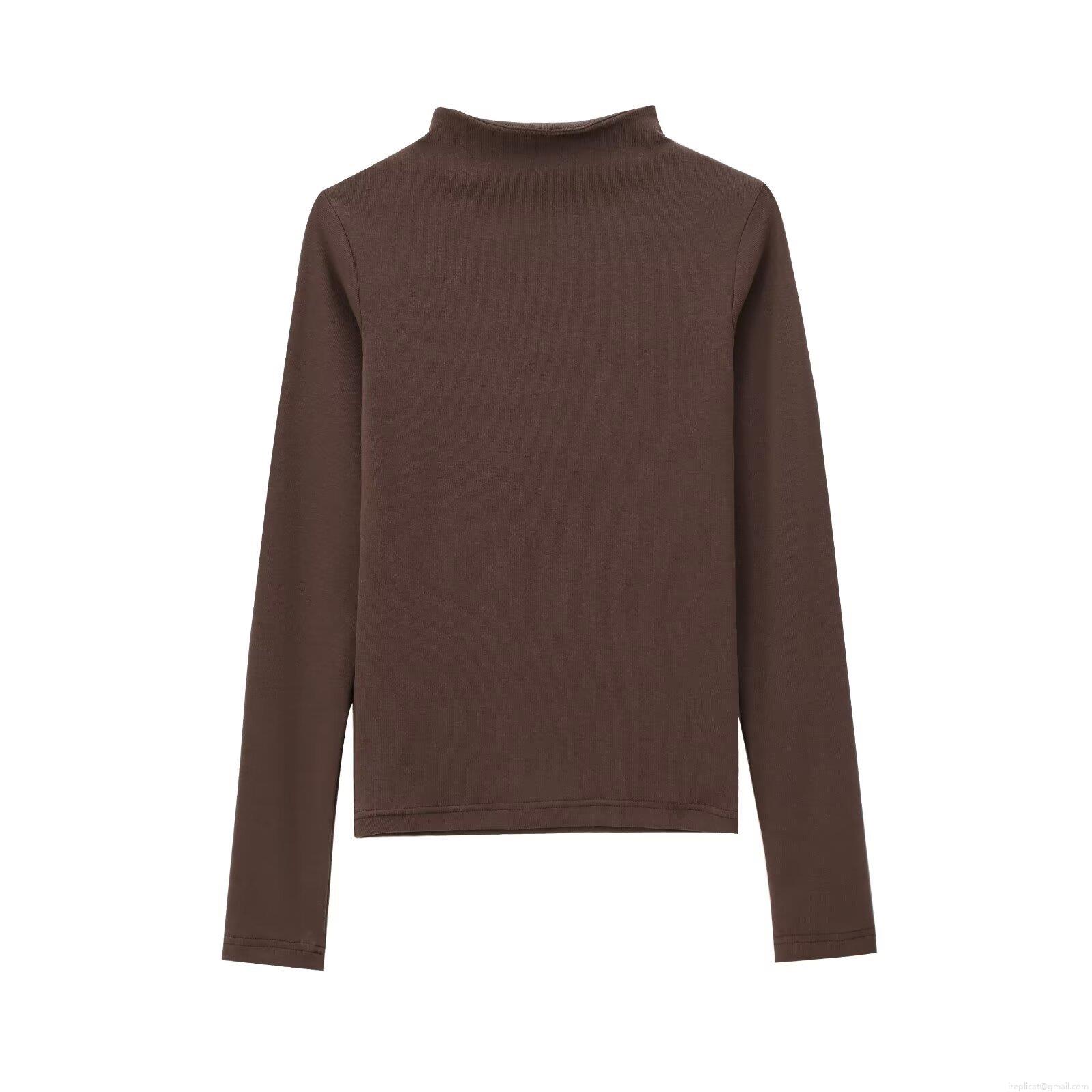 • Women's Mock Neck Long Sleeve T-Shirt Ciro Cotton Ribbed Knit Slim Fit Pullover Top Basic Solid Color Undershirt For Daily Wear Autumn Winter