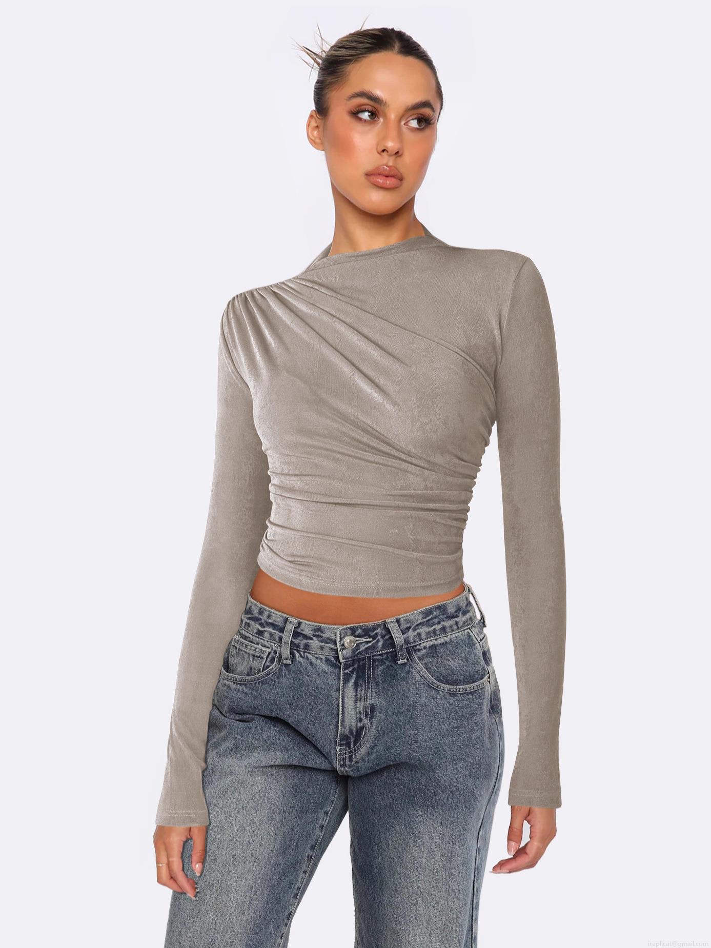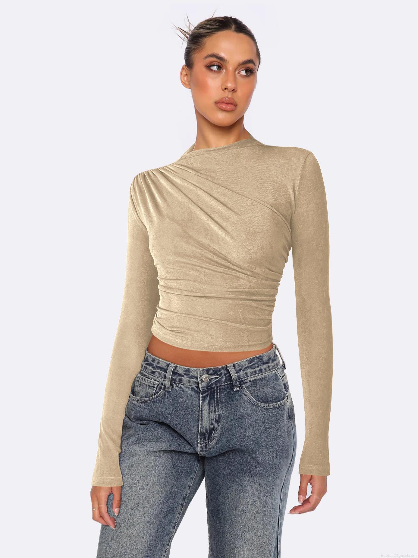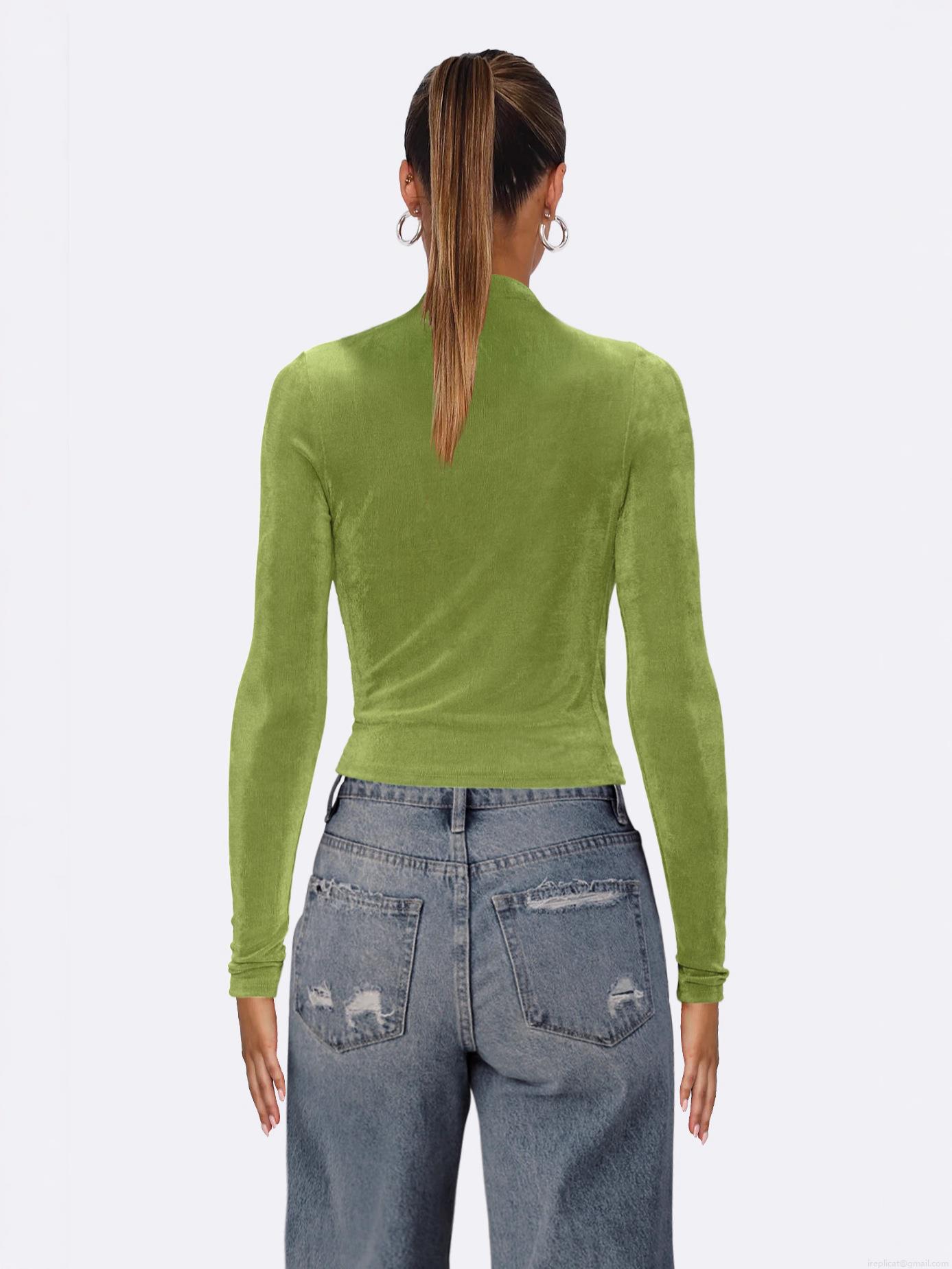 Women's Mock Neck Ruched Slim Fit T-Shirt Long Sleeve Coral Velvet Top Elegant Solid Color Streetwear Sexy Base Layer For Women Autumn Winter