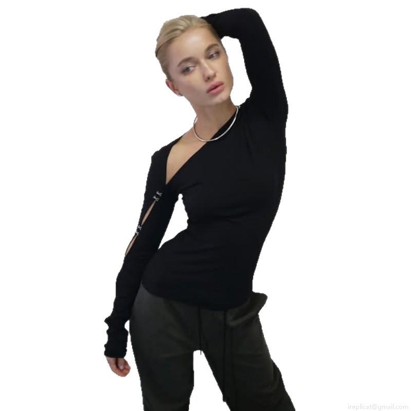 • Women's Off Shoulder Cut-Out Long Sleeve T-Shirt Asymmetric Slim Fit Solid Black Polyester Top With Metal Buckle Details Streetwear Casual Daily Tee