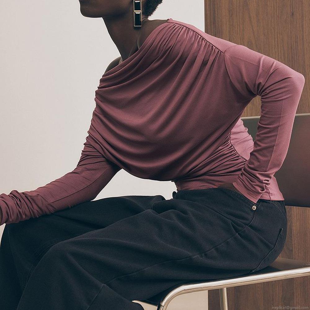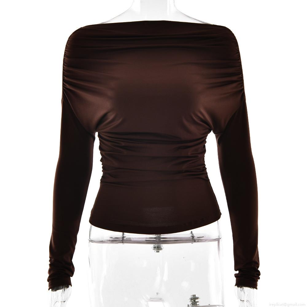 Women's Off Shoulder Long Sleeve Ruched T-Shirt Solid Color Slim Fit Draped Top Sexy Autumn Winter Polyester Milk Silk Blouse For Dating Streetwear