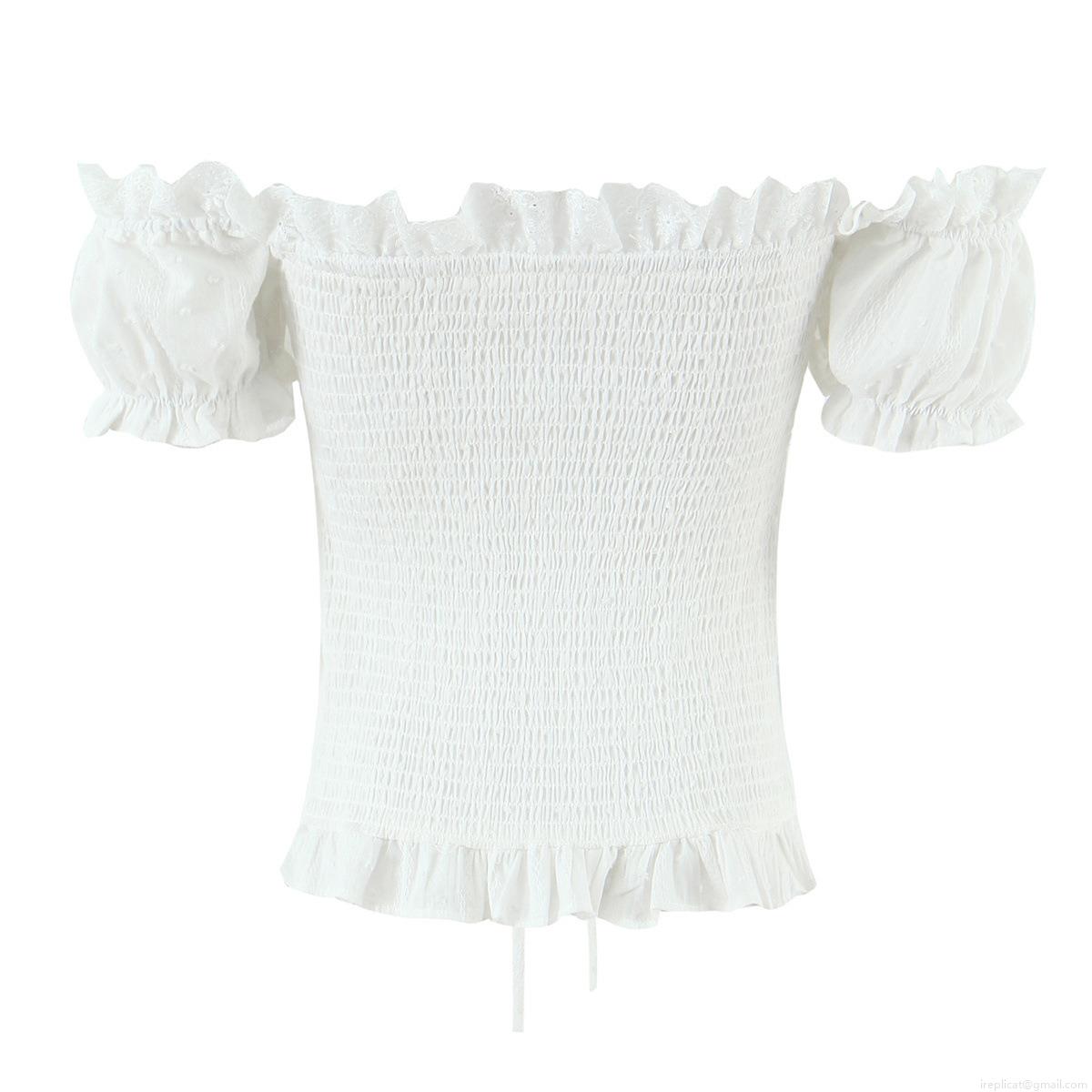 • Women's Off Shoulder Short Sleeve Top Cotton Swiss Dot Puff Sleeve Tie-Up Cardigan Lace Trim French Vintage Style Breathable Slim Fit White Blouse