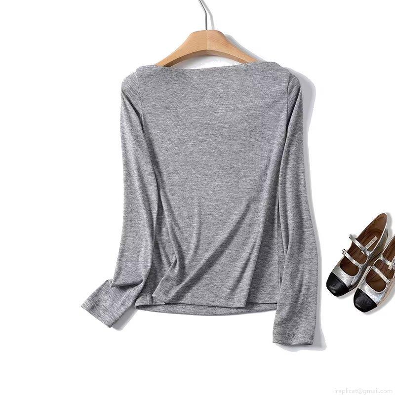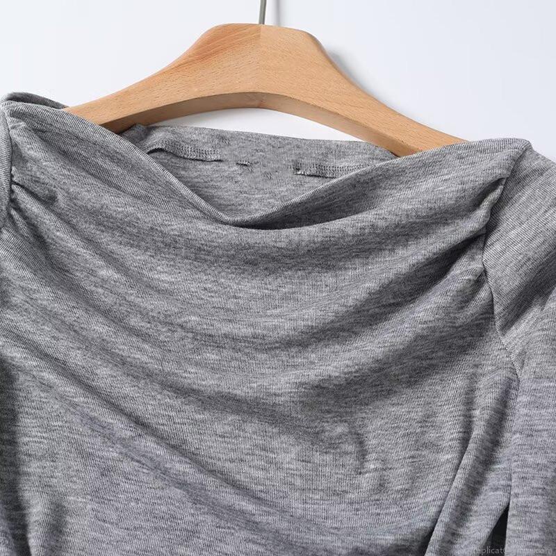 • Women's Off-Shoulder Ruched Long Sleeve T-Shirt Slim Fit Polyester Blend Heather Grey Basic Casual Top For Autumn Daily Wear