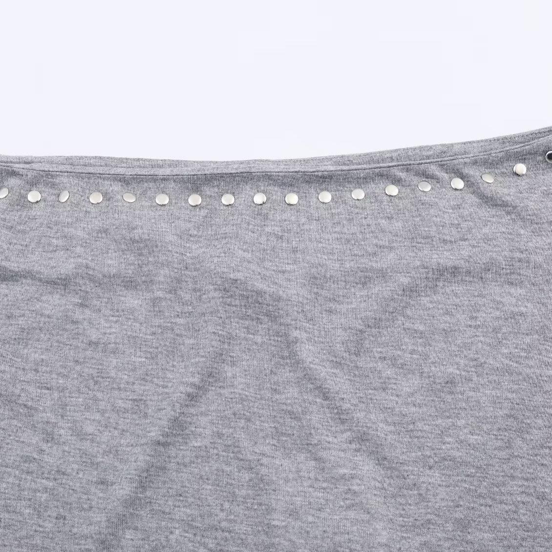Solid Color, Rivet, Off-the-shoulder Neckline, Metal Ornaments