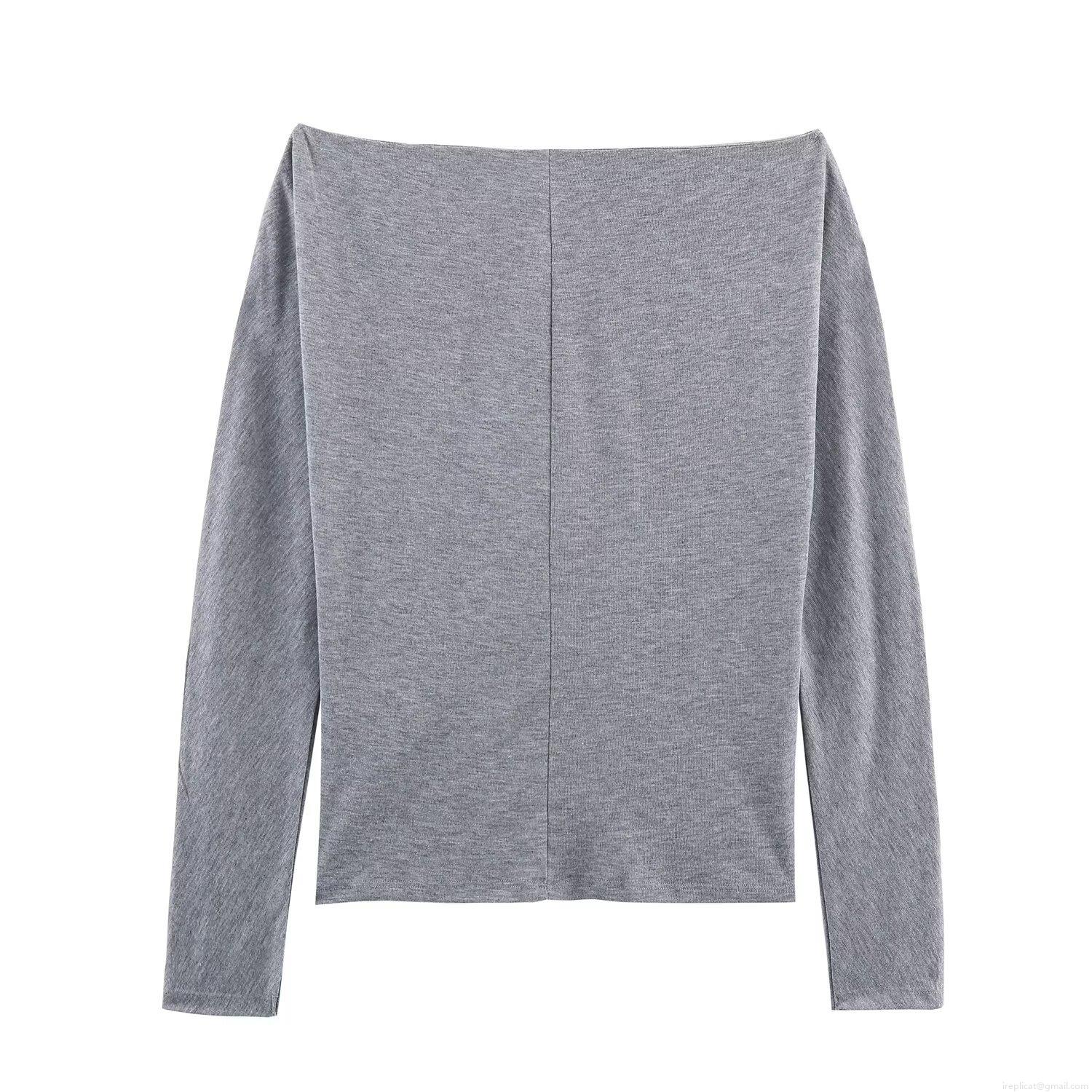 • Women's Off-The-Shoulder Long Sleeve T-Shirt Polyester Spandex Studded Detail Casual Pullover Top For Daily Winter Fashion Women