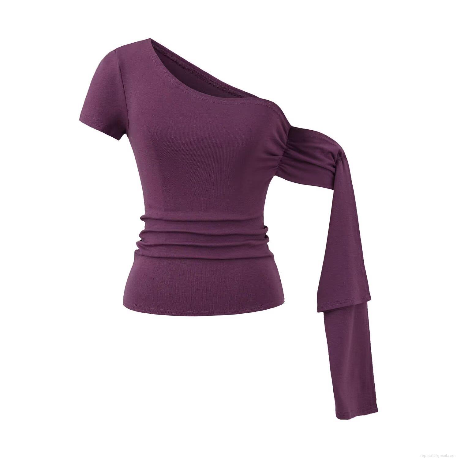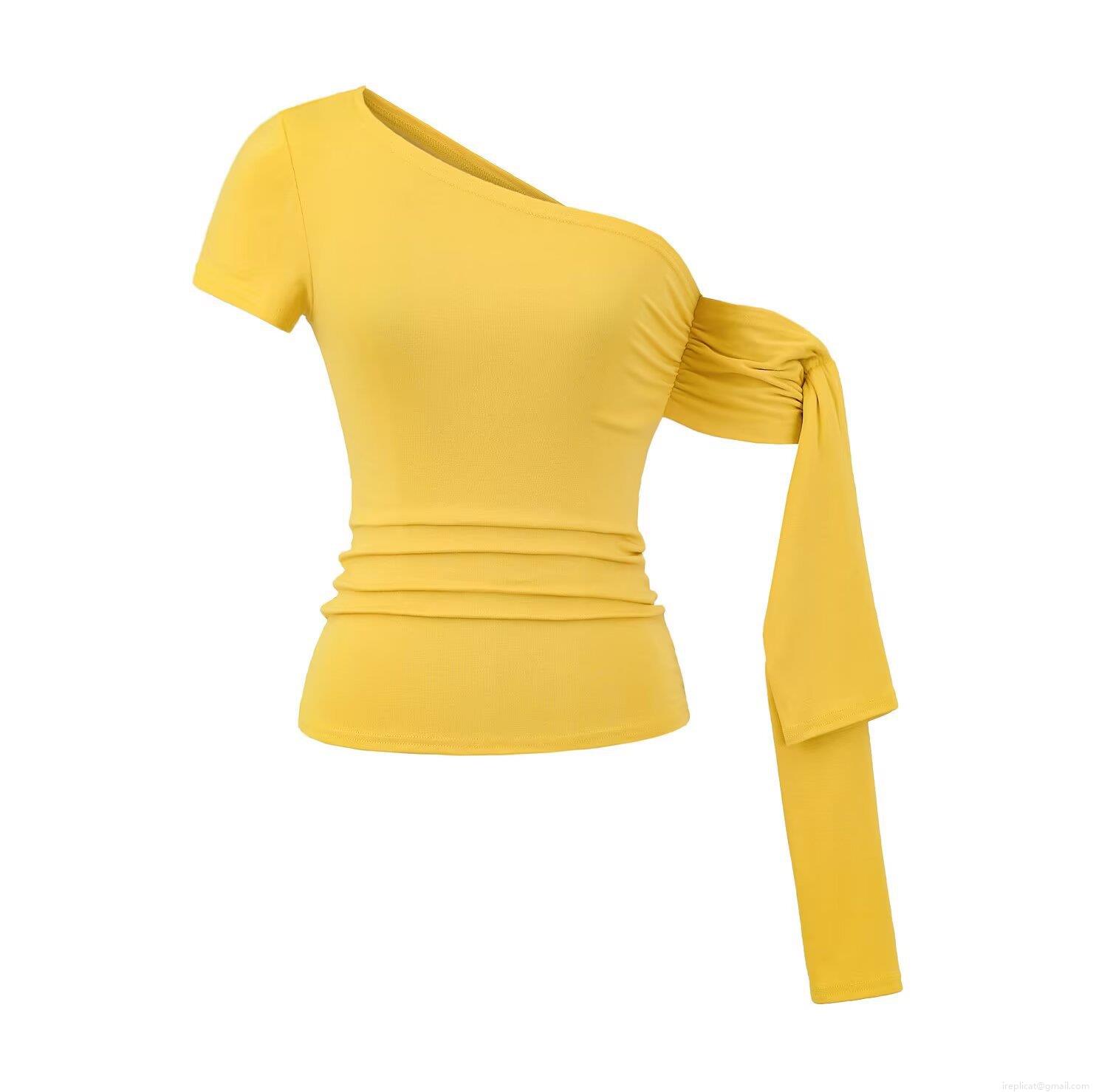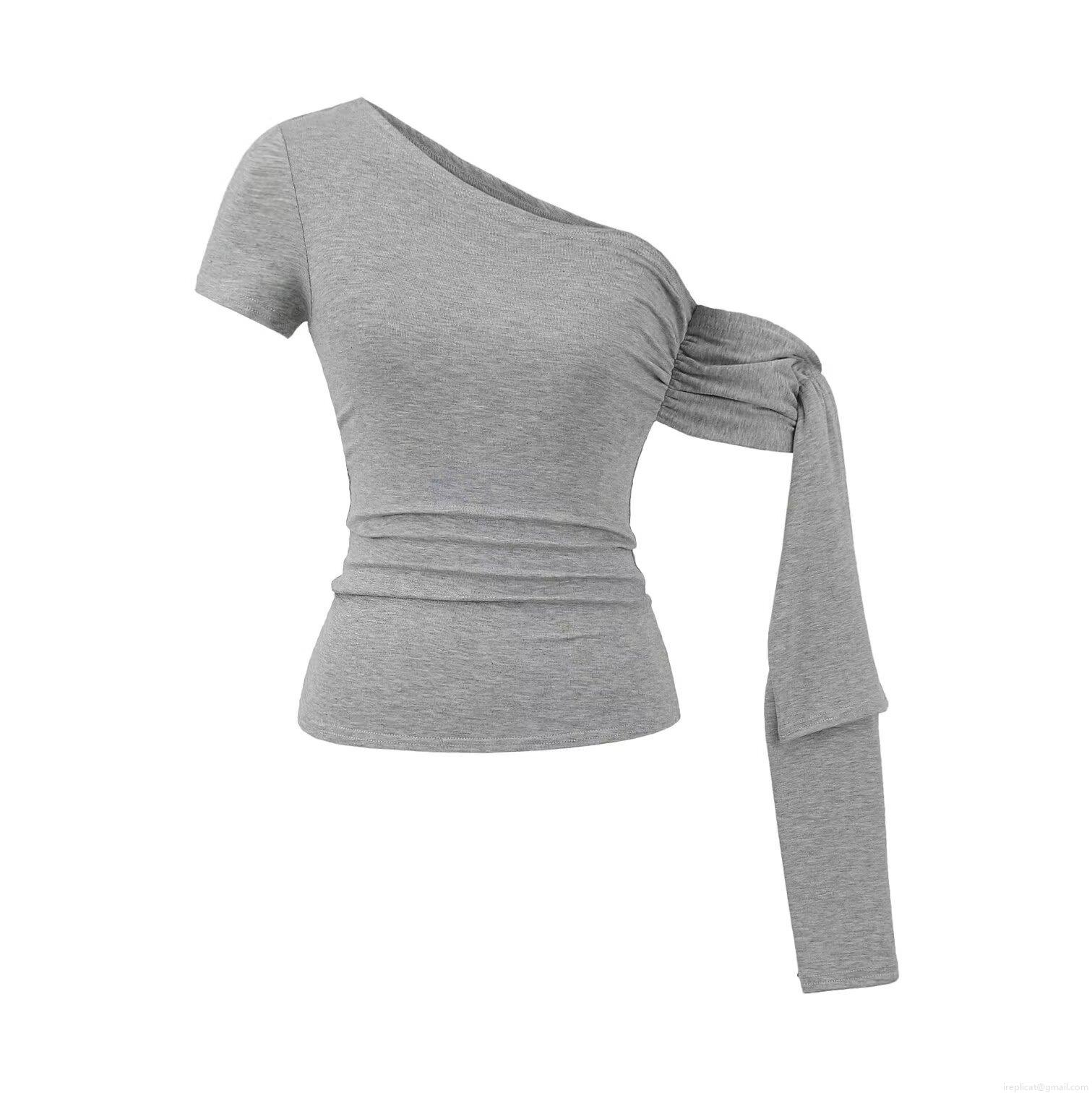 Women's One Shoulder Asymmetric Pleated T-Shirt Viscose Elastane Short Sleeve Casual Summer Top Streetwear Slim Fit Blouse for Ladies