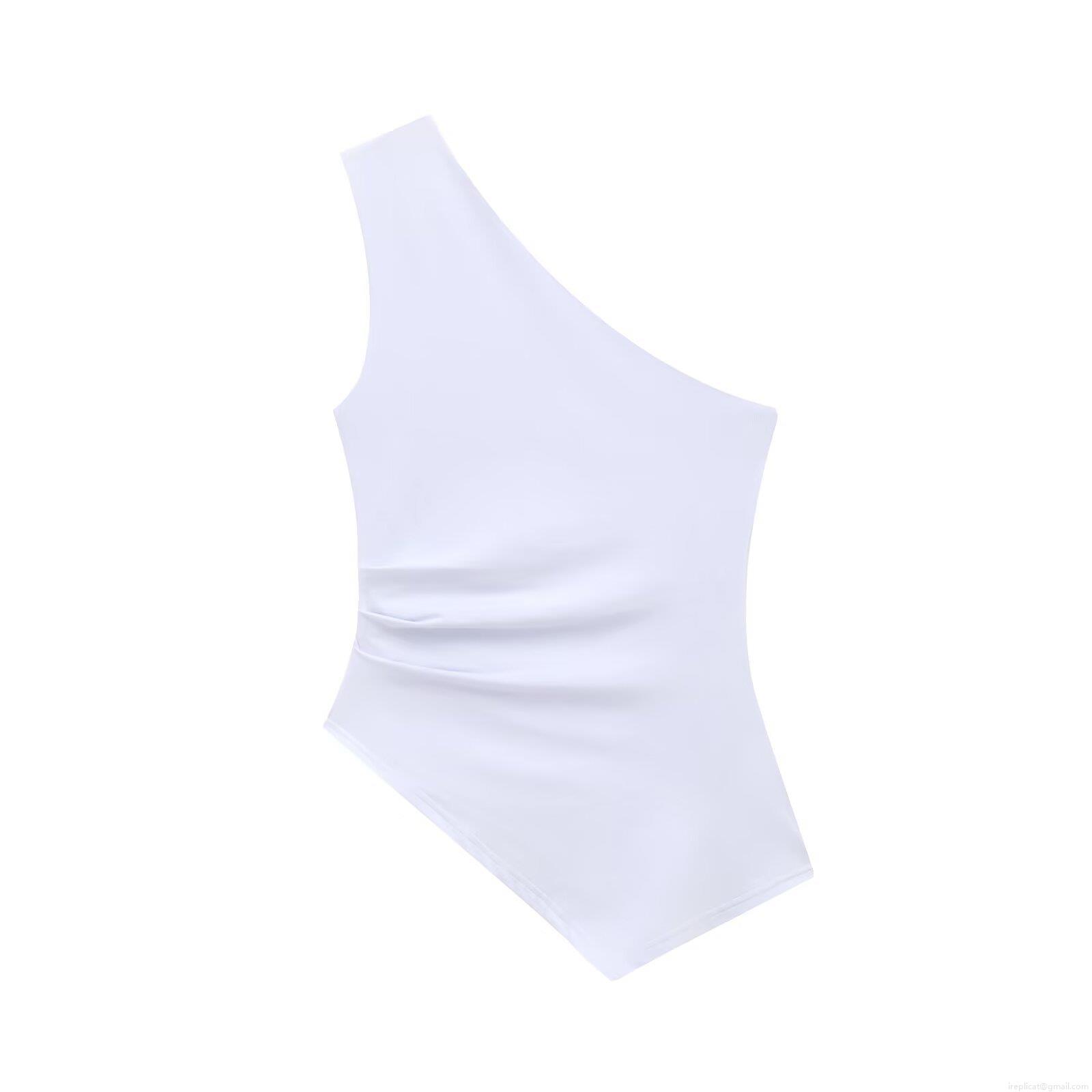 • Women's One Shoulder Asymmetric T-Shirt Ruched Sleeveless Cotton Blend Slim Fit Sexy Summer Streetwear Top Solid Color Casual Tee