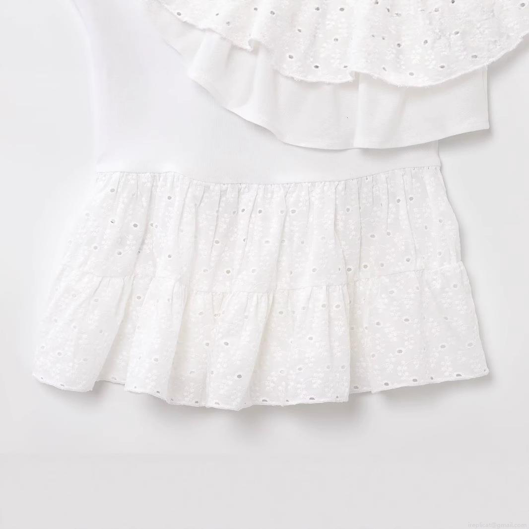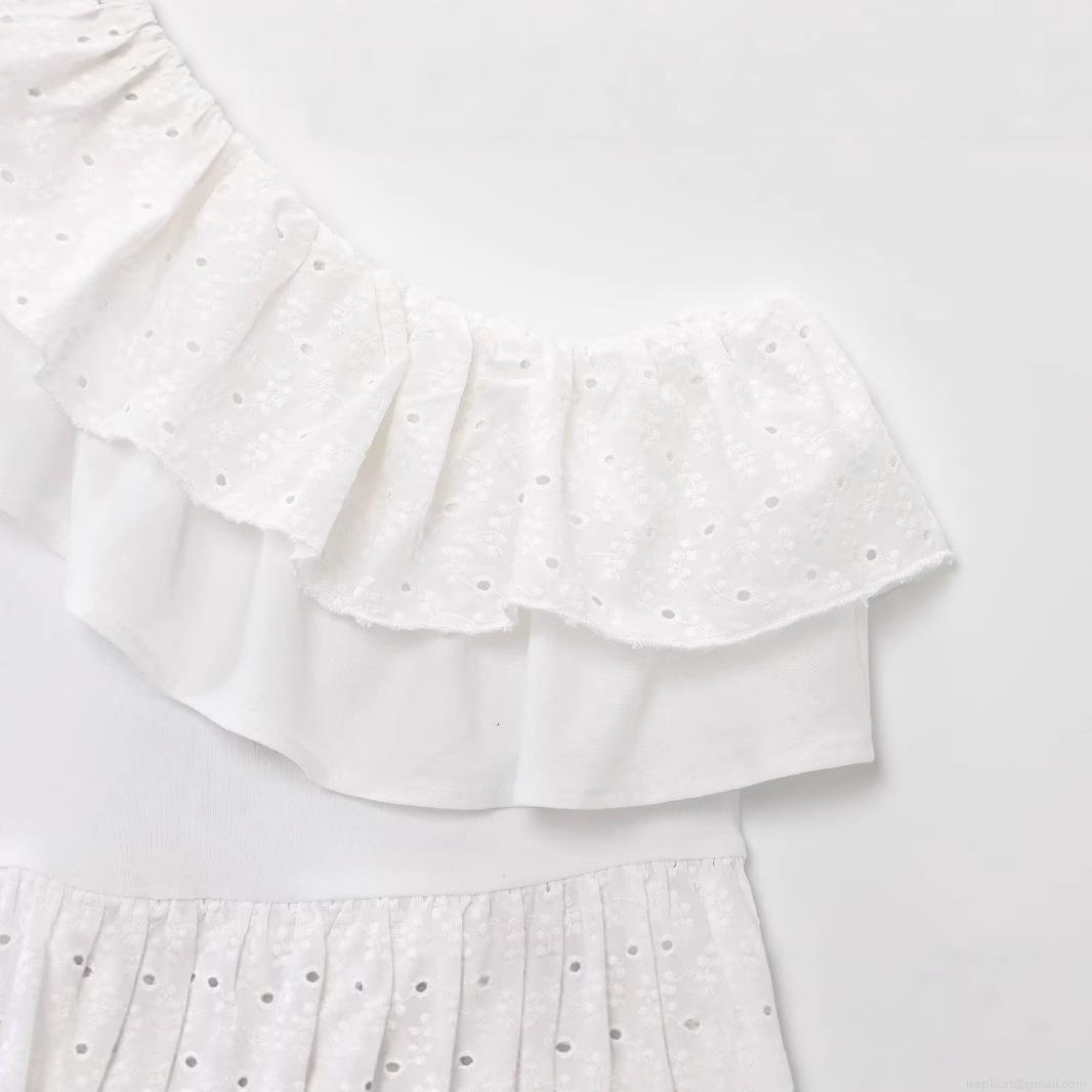 Solid Color, Splice, Embroidery, Asymmetric, Hollow Out, Ruffles, Eye Embroidery