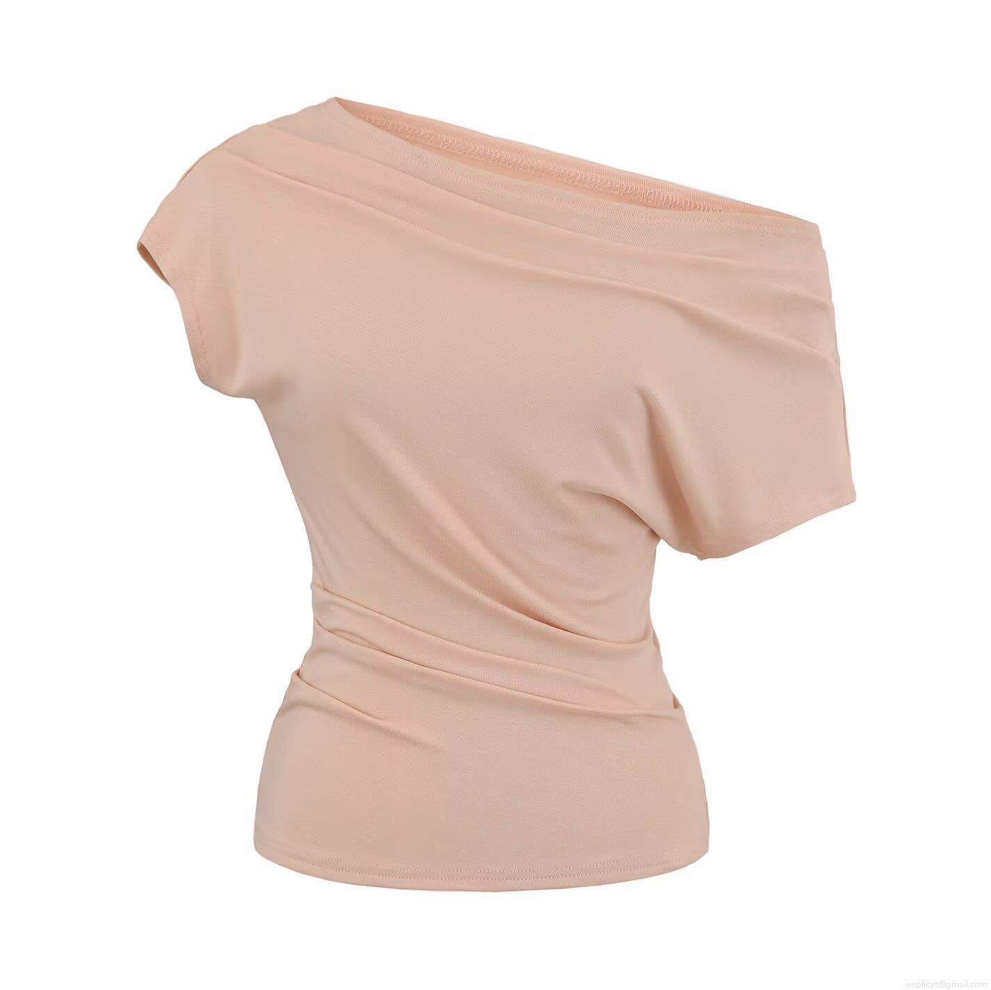Women's One Shoulder Ruched T-Shirt Asymmetrical Neck Slim Fit Knit Short Sleeve Top Solid Color Elegant Casual Streetwear Viscose Elastane Blouse