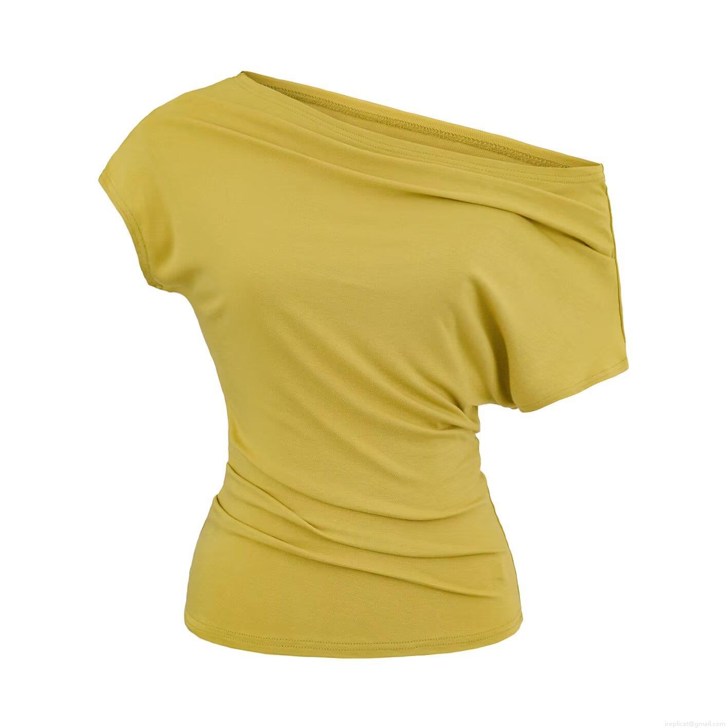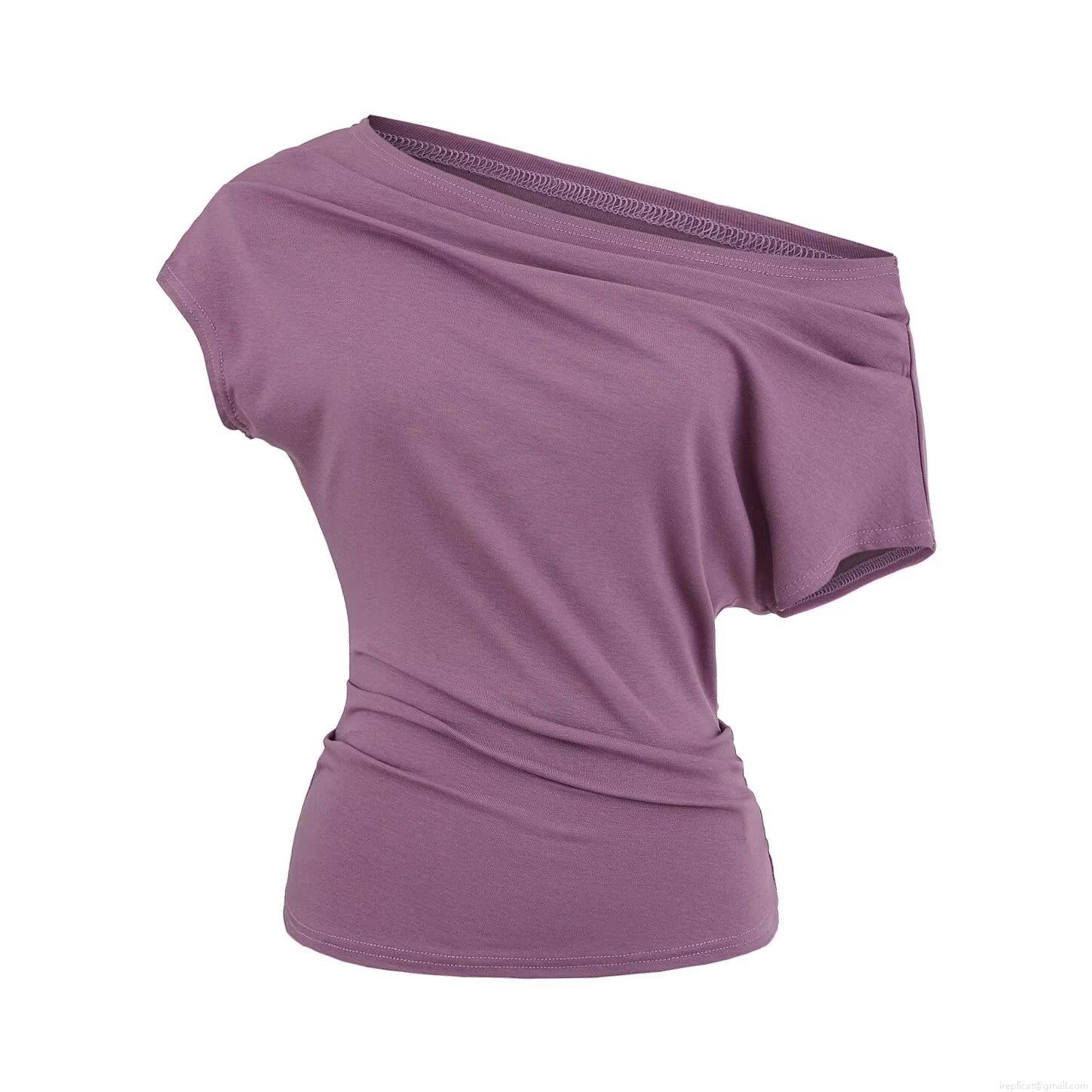 • Women's One Shoulder Ruched T-Shirt Asymmetrical Neck Slim Fit Knit Short Sleeve Top Solid Color Elegant Casual Streetwear Viscose Elastane Blouse