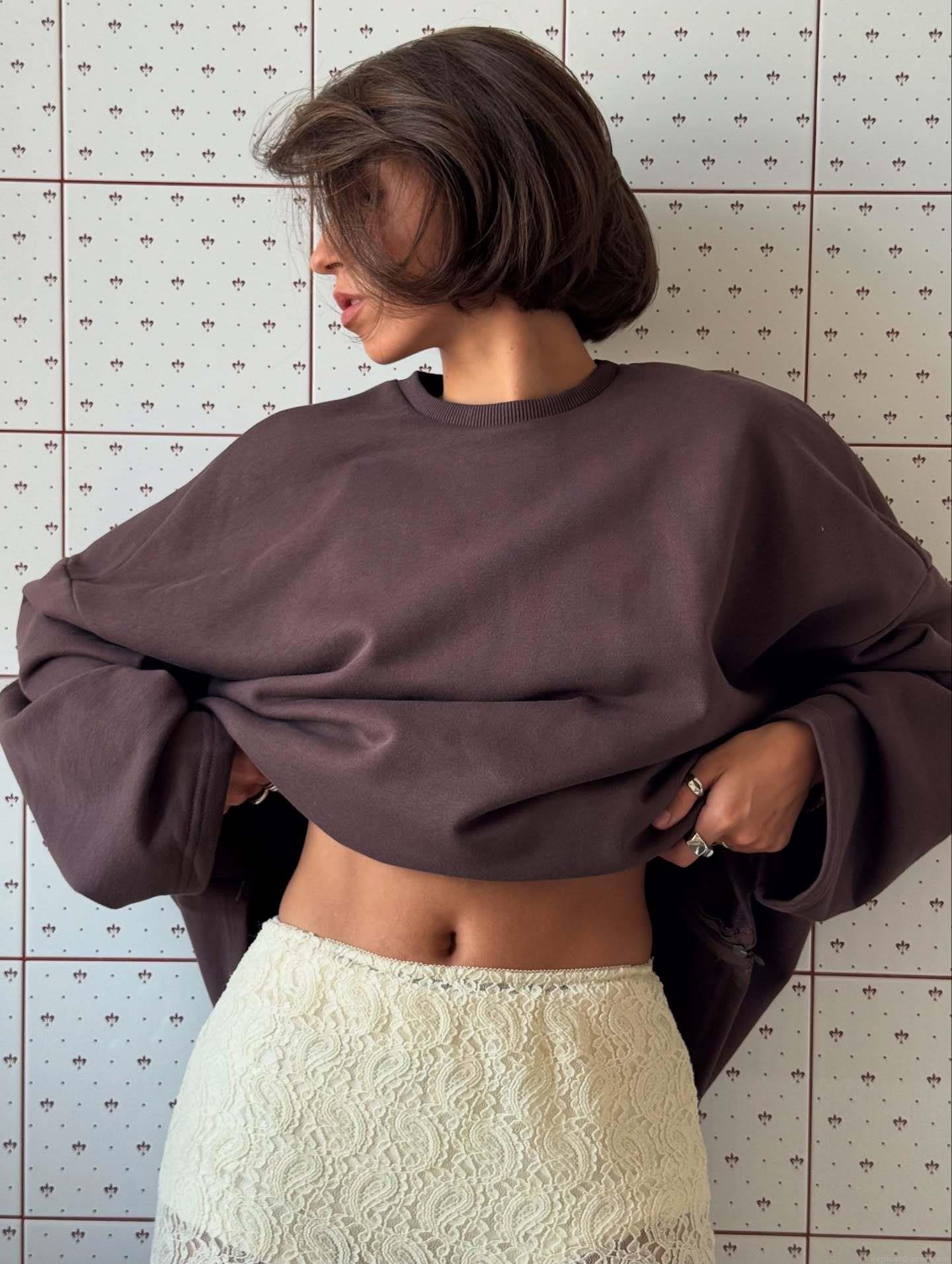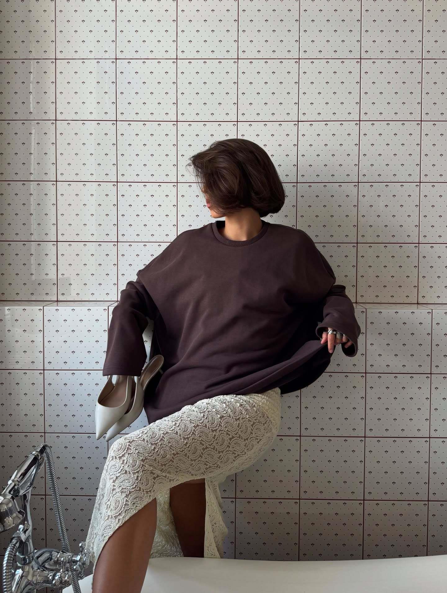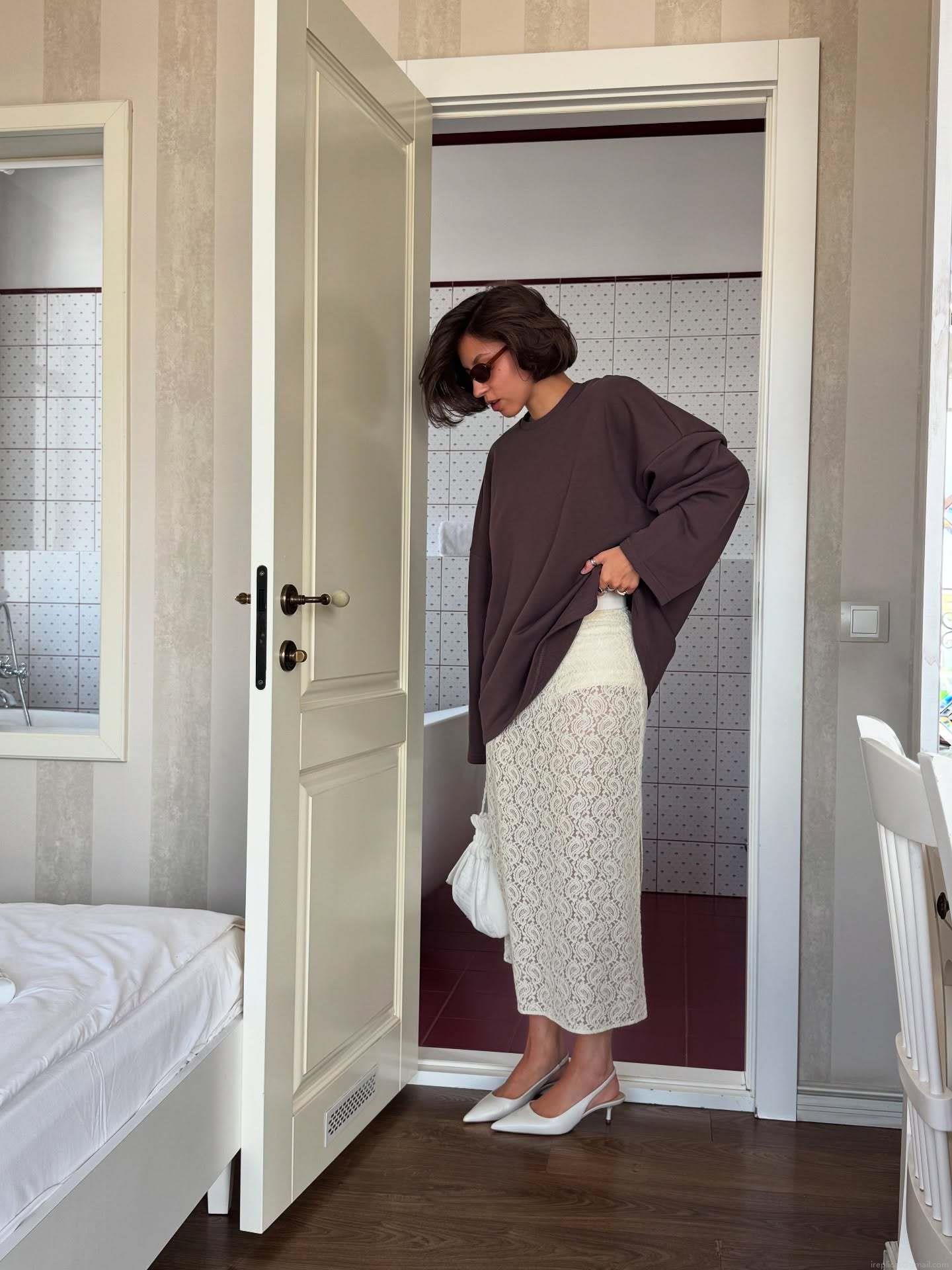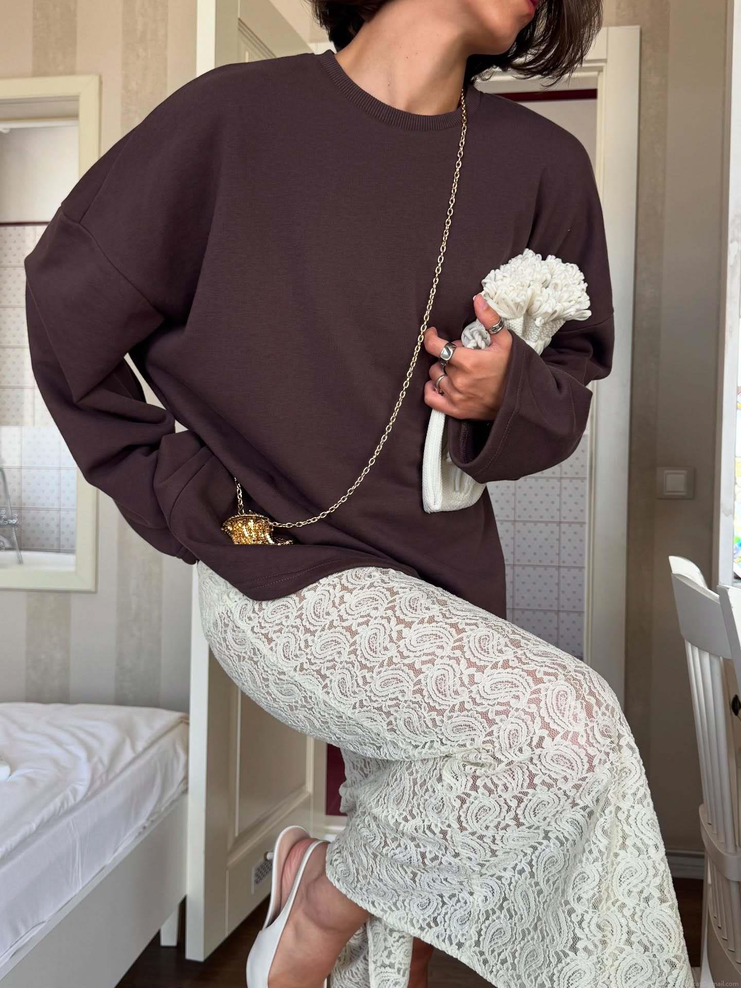 • Women's Oversize Long Sleeve T-Shirt Knitted Cotton Blend Maillard Brown Pullover Top Loose Round Neck Casual Daily Autumn Shirt for Women