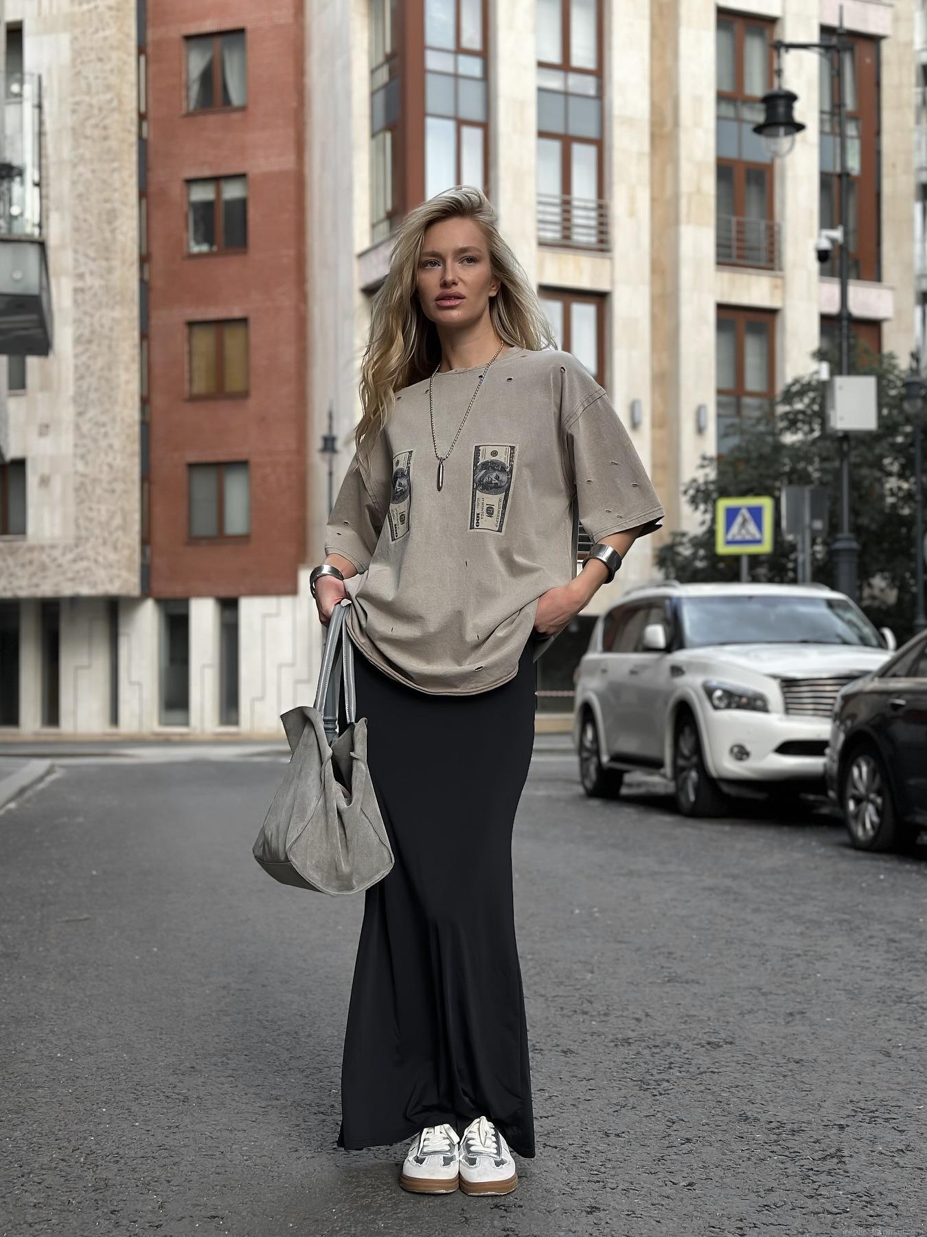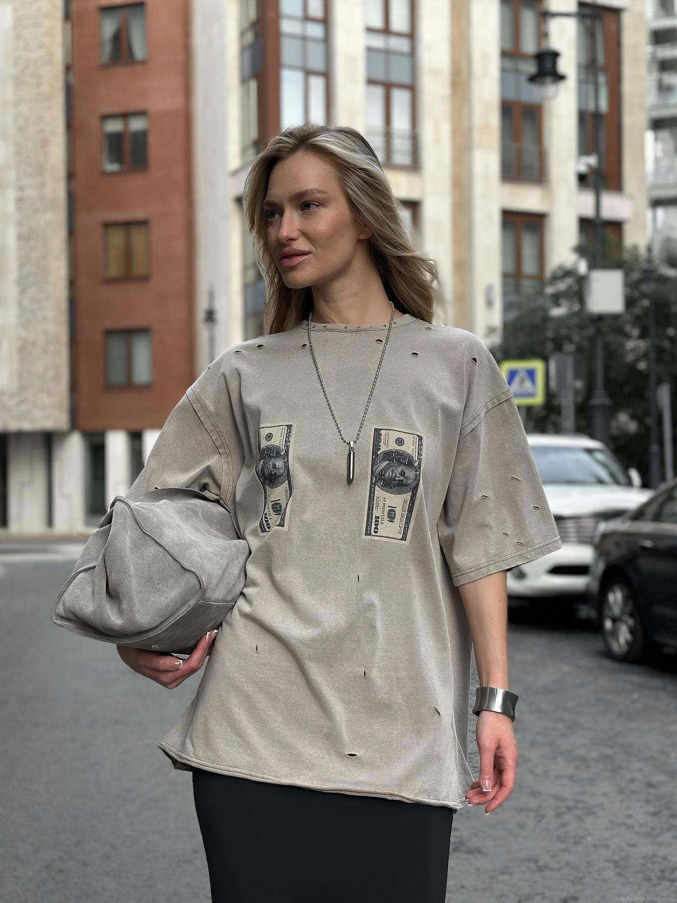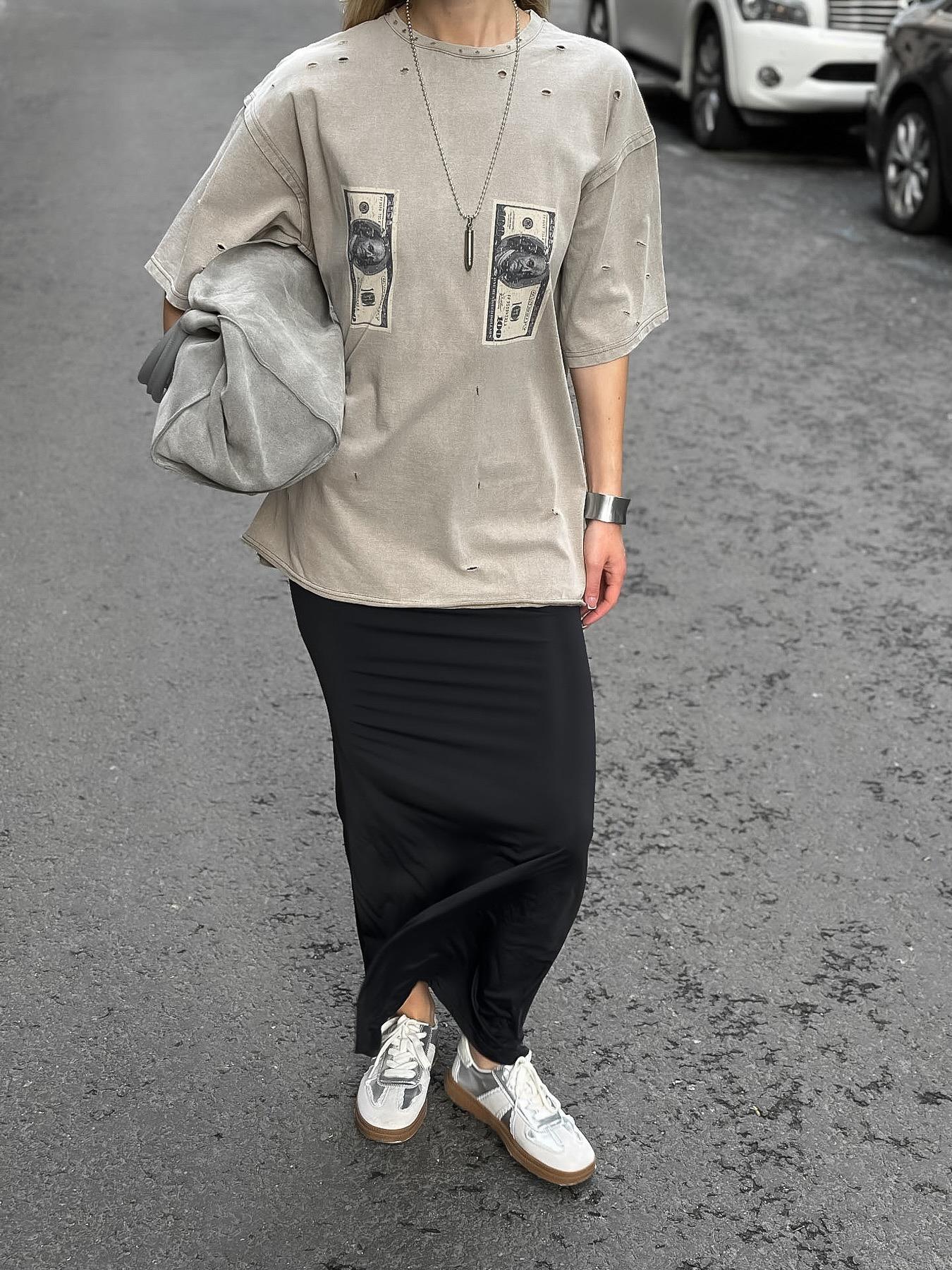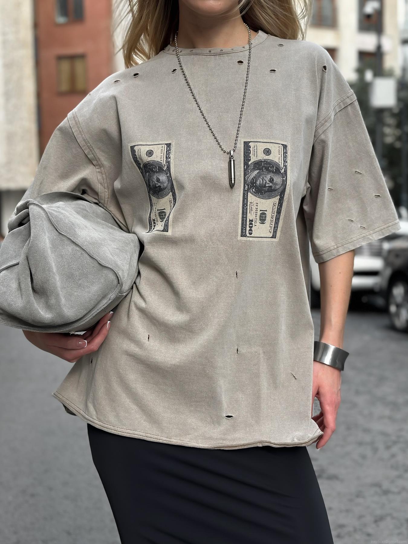 • Women's Oversized 100% Cotton T-Shirt Distressed Ripped Washed Dollar Print Streetwear Retro Short Sleeve Tee Top For Summer Daily Wear