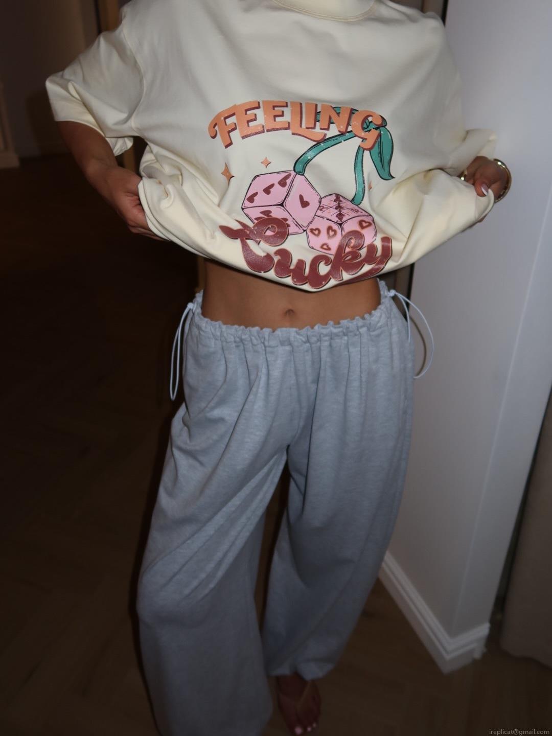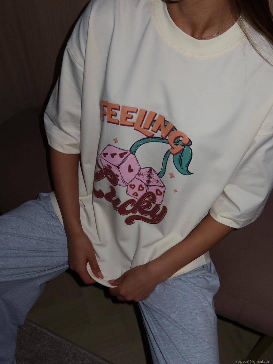 • Women's Oversized Cotton Blend T-Shirt American Vintage Feeling Lucky Letter Dice Cherry Graphic Print Short Sleeve Crew Neck Casual Streetwear Tee