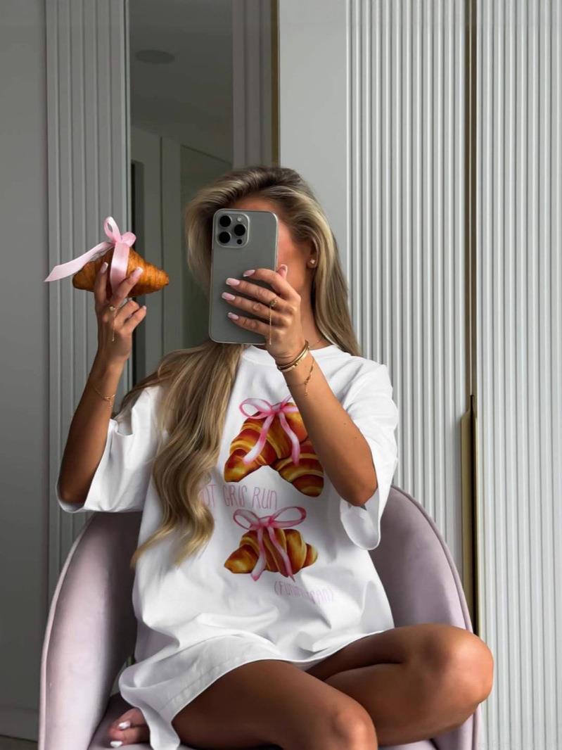 Bow, Croissant, Printing, Oversize, Dropped Shoulders