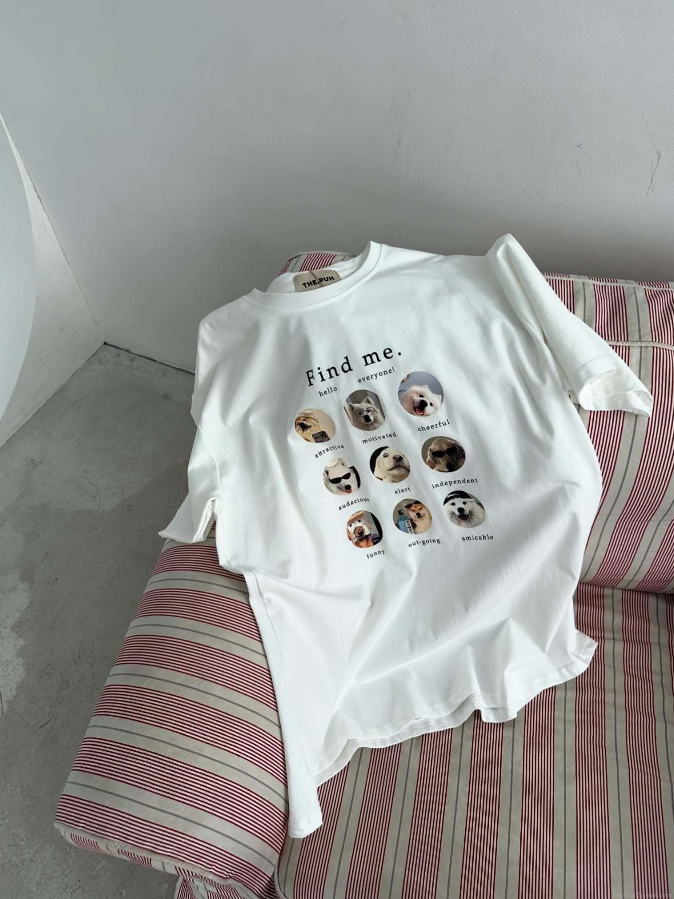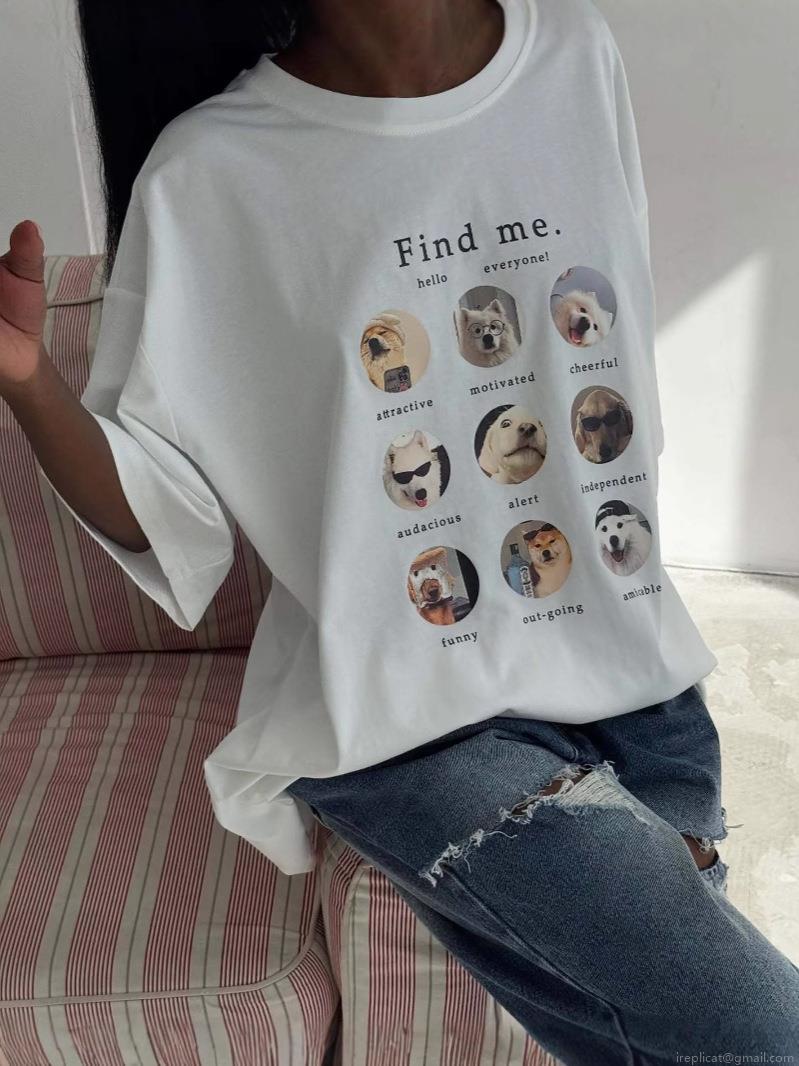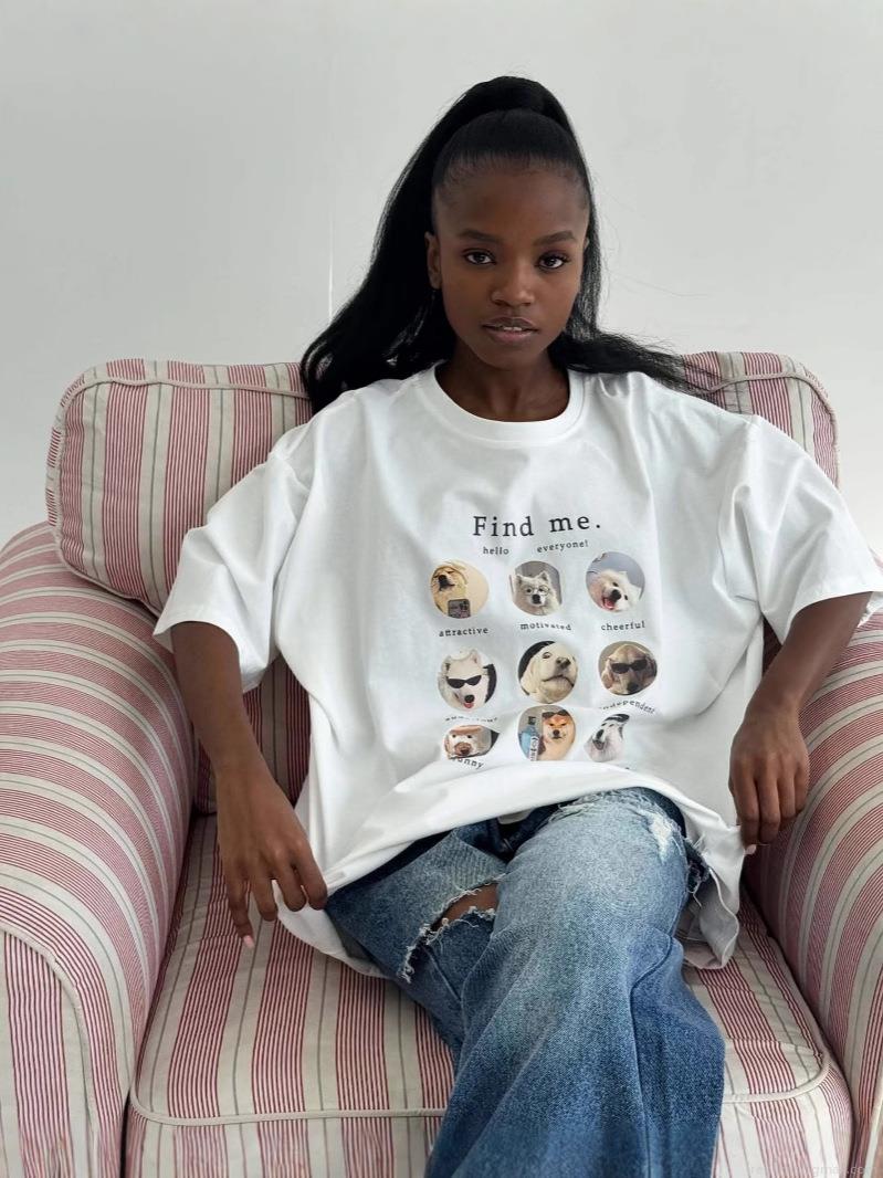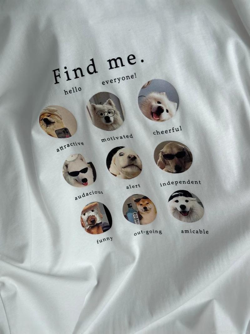 Letters, Dog, Nine-square Grid, Photo Print, Letter Description, Loose Fit