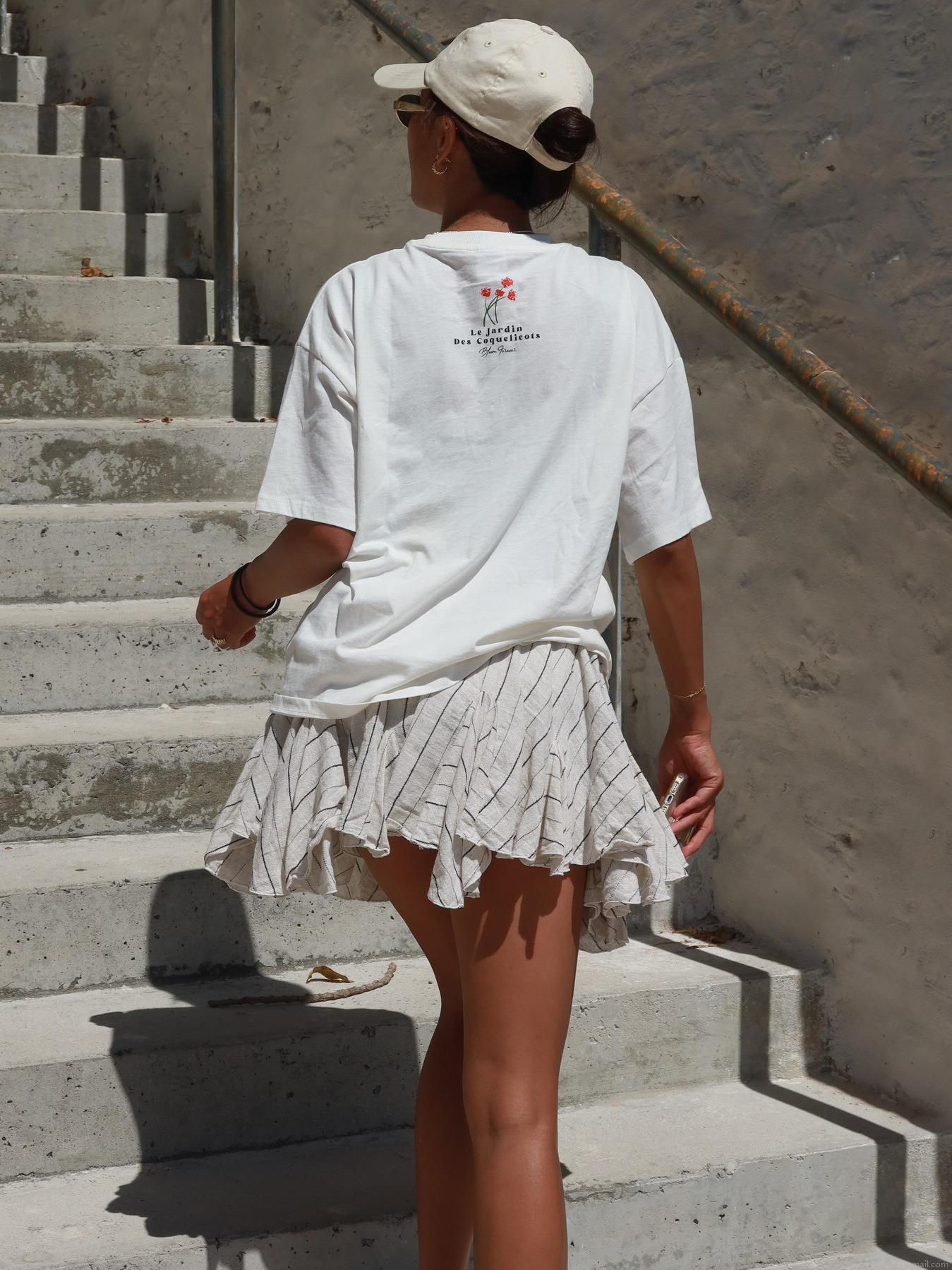 • Women's Oversized Cotton Blend T-Shirt Graphic Floral Print Le Jardin French Text Casual Short Sleeve Round Neck Summer Streetwear Top