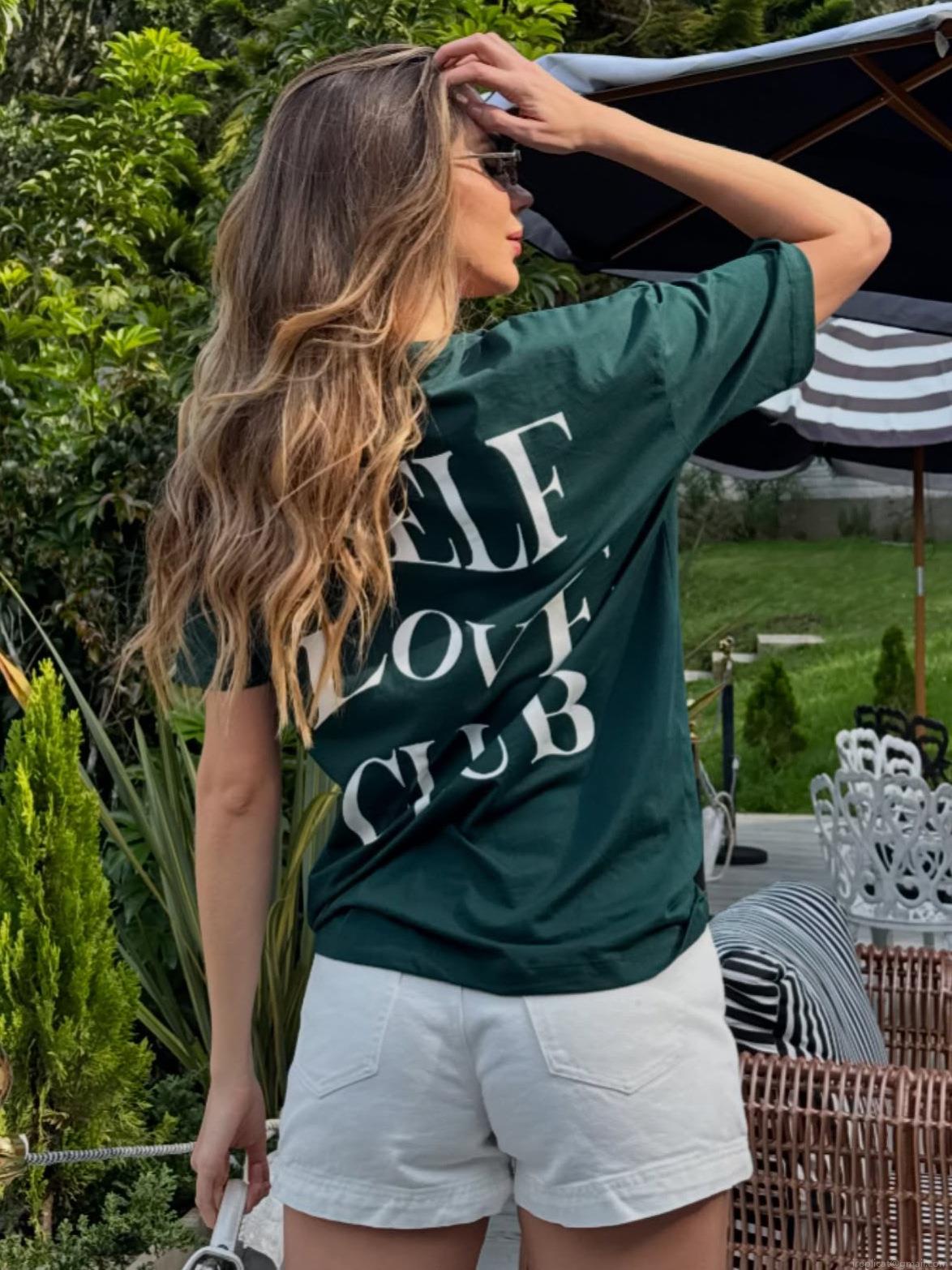 • Women's Oversized Cotton Blend T-Shirt Top With Self Love Club Letter Print Casual Crew Neck Short Sleeve Summer Fashion Streetwear For Ladies