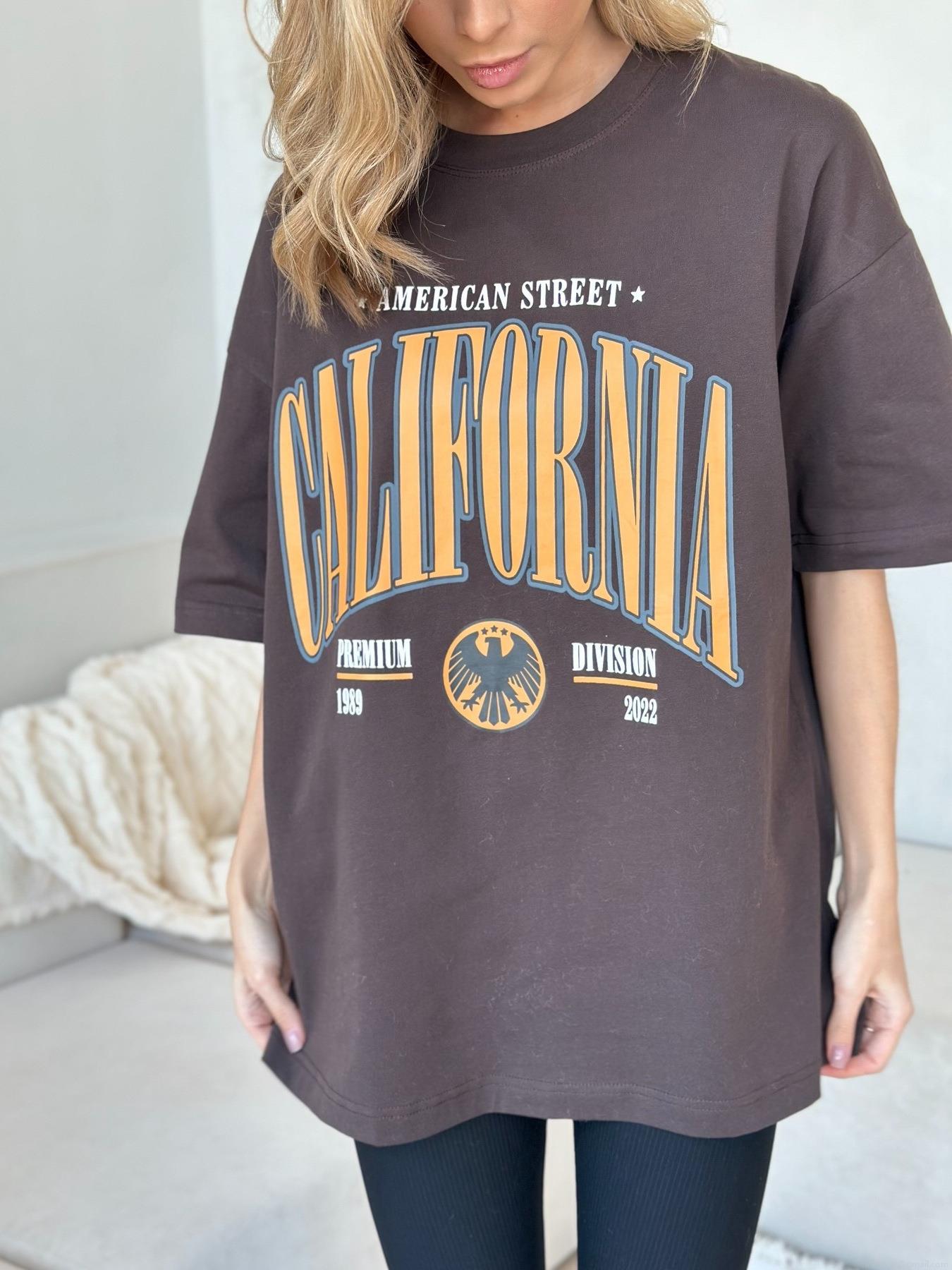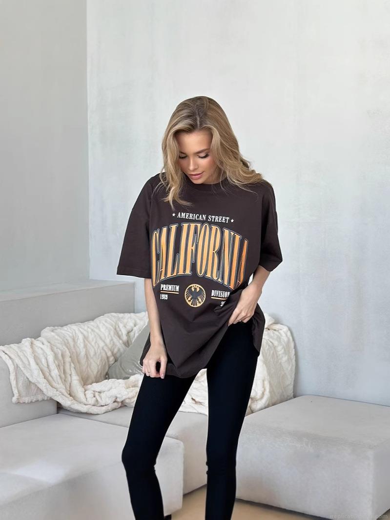 Women's Oversized Cotton T-Shirt California American Street Letter Eagle Print Short Sleeve Round Neck Summer Streetwear Casual Tee Top