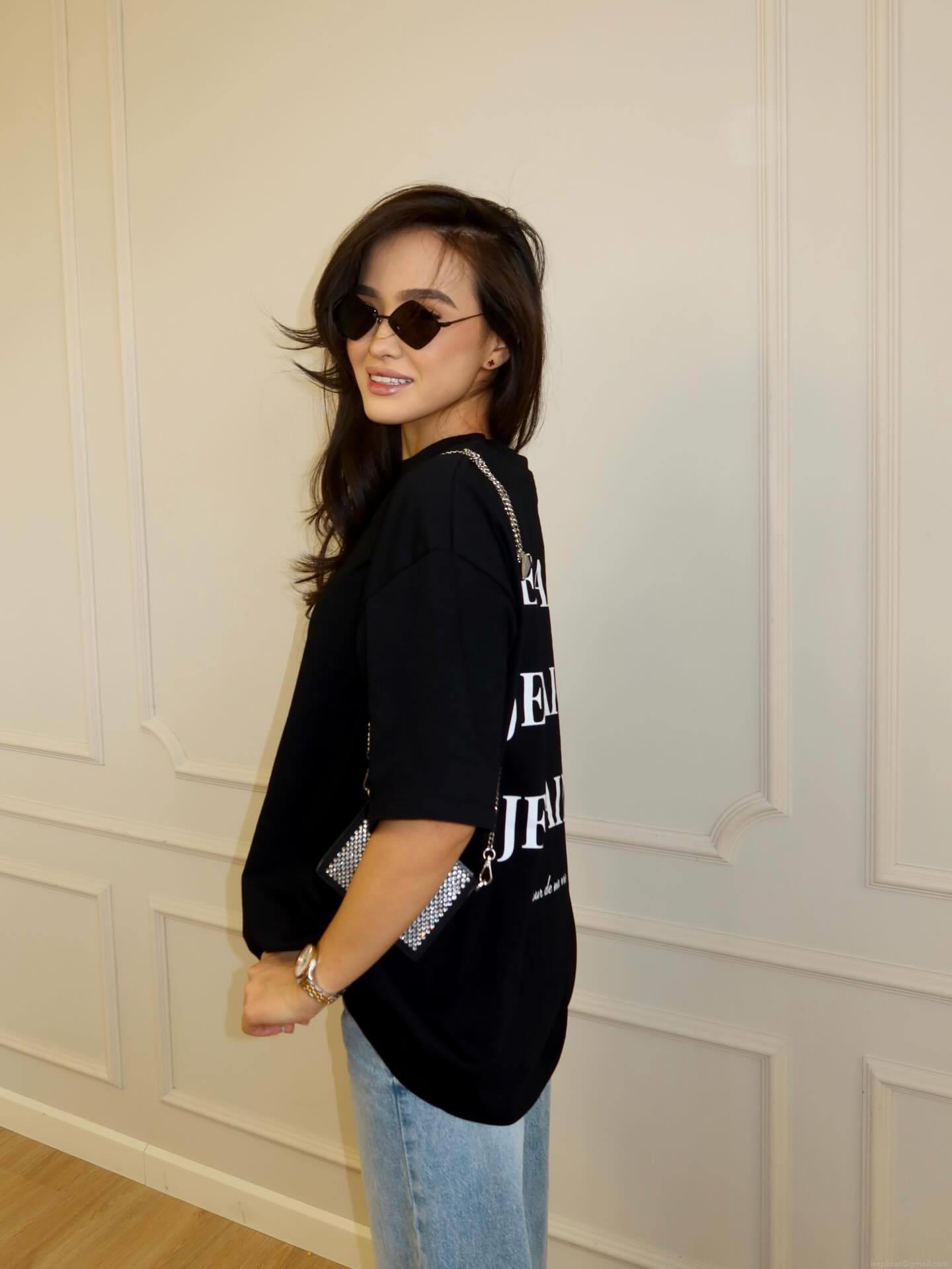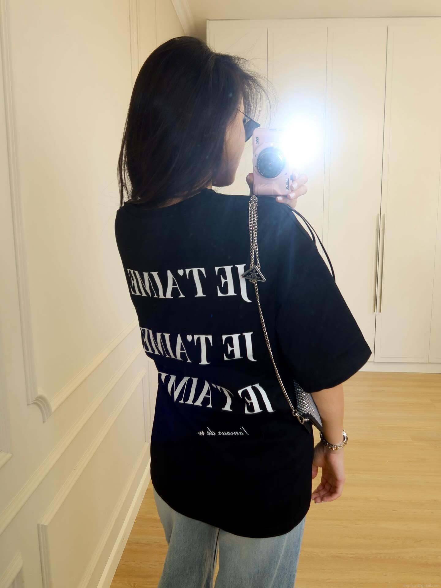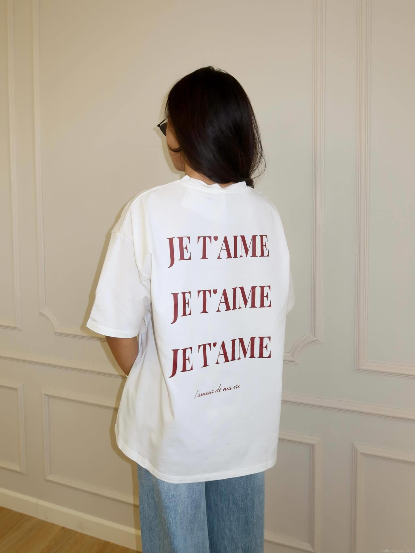 • Women's Oversized Cotton T-Shirt Casual Short Sleeve Round Neck Drop Shoulder Top With French JE T'AIME Letter Print Harajuku Streetwear Summer Basic Tee