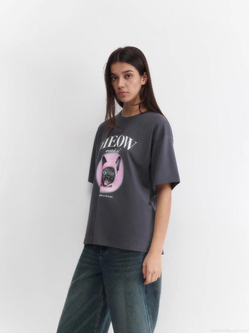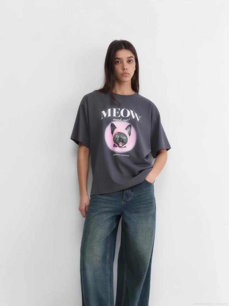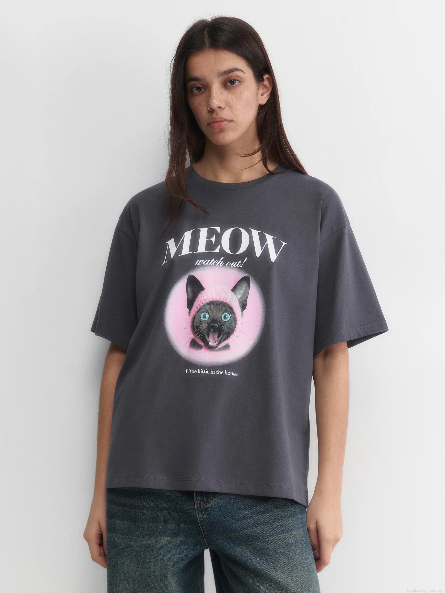 Women's Oversized Cotton T-Shirt Funny Cat Graphic Letter Print Short Sleeve Round Neck Summer Casual Streetwear Tee Top