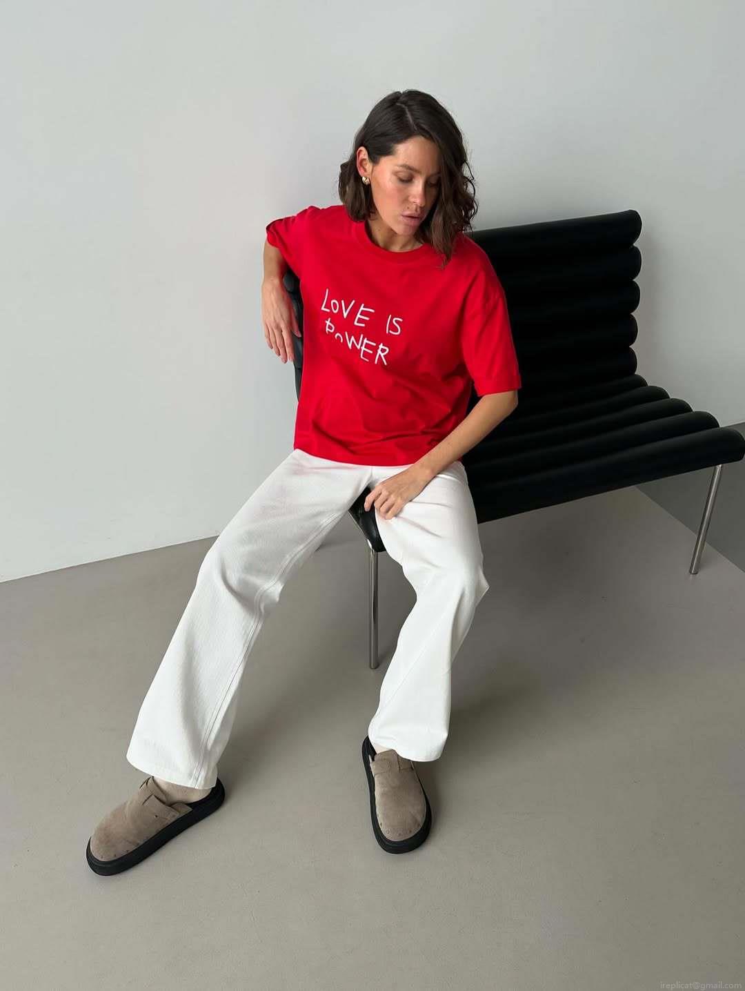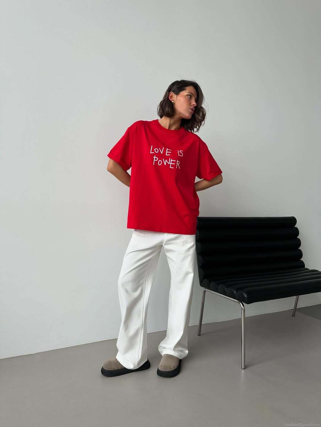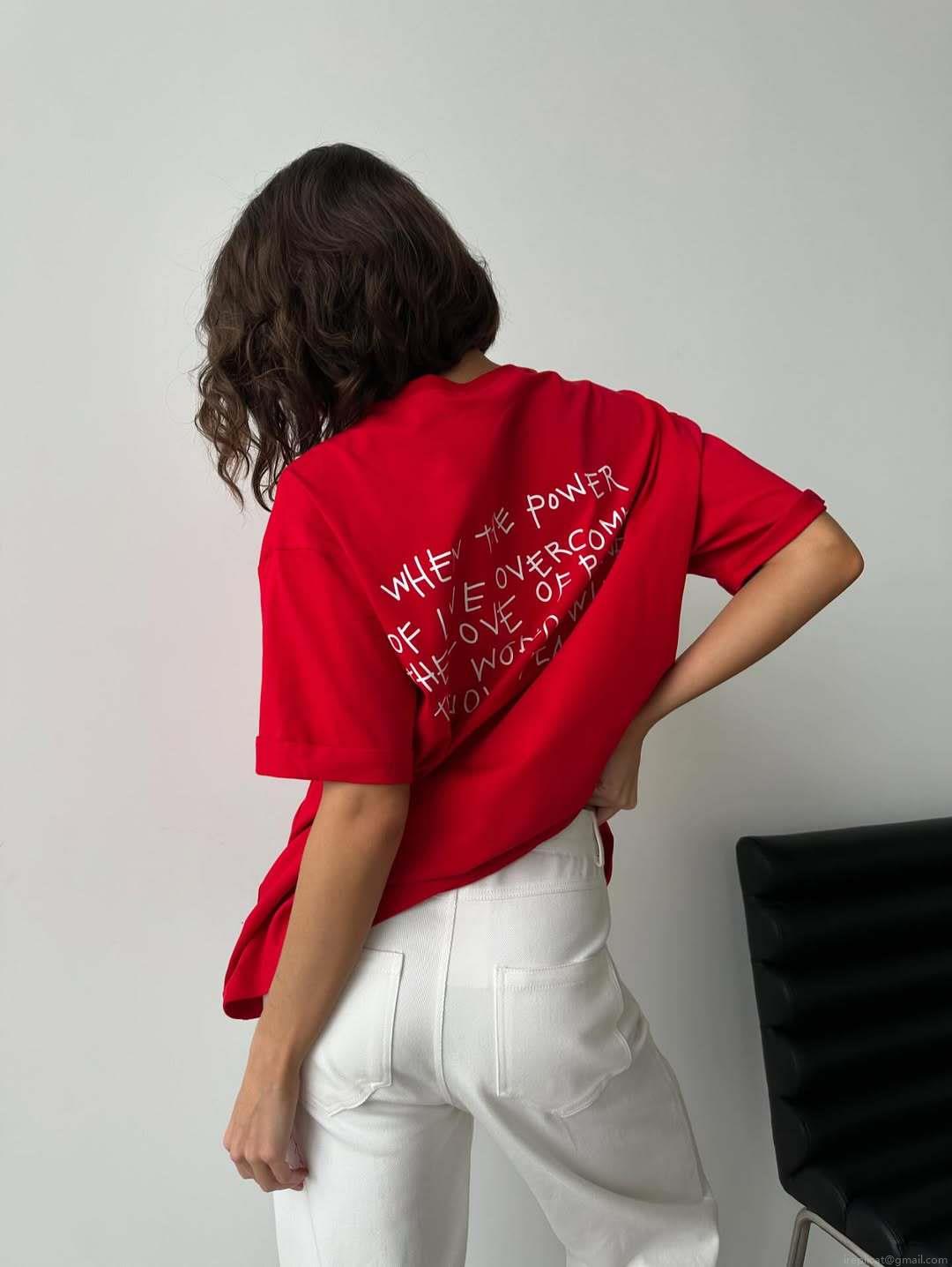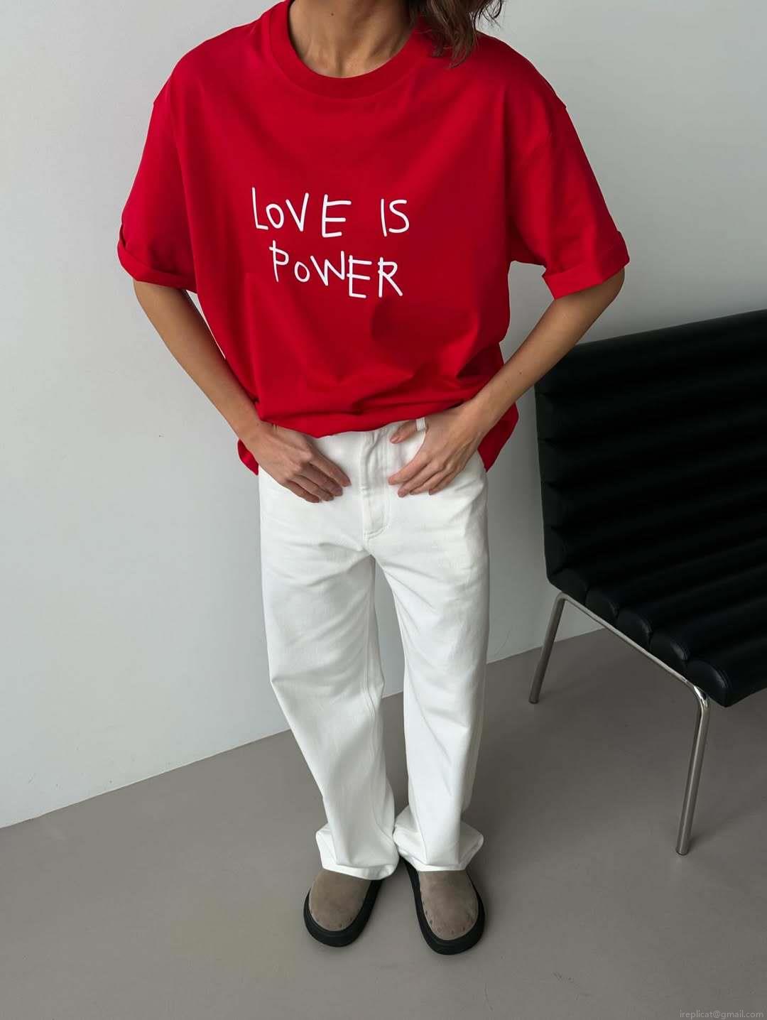 • Women's Oversized Red T-Shirt Love Is Power Slogan Print Crew Neck Short Sleeve Loose Cotton Blend Drop Shoulder Streetwear Summer Tee Top