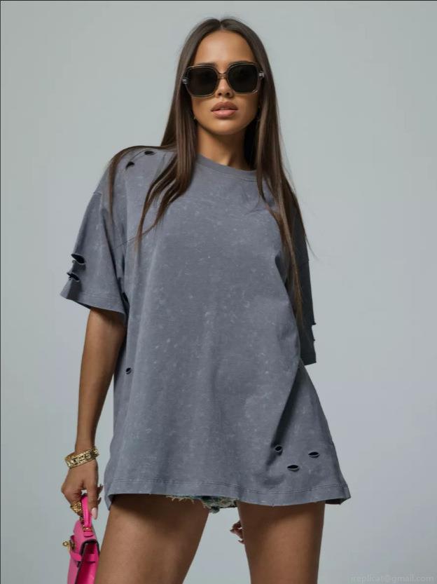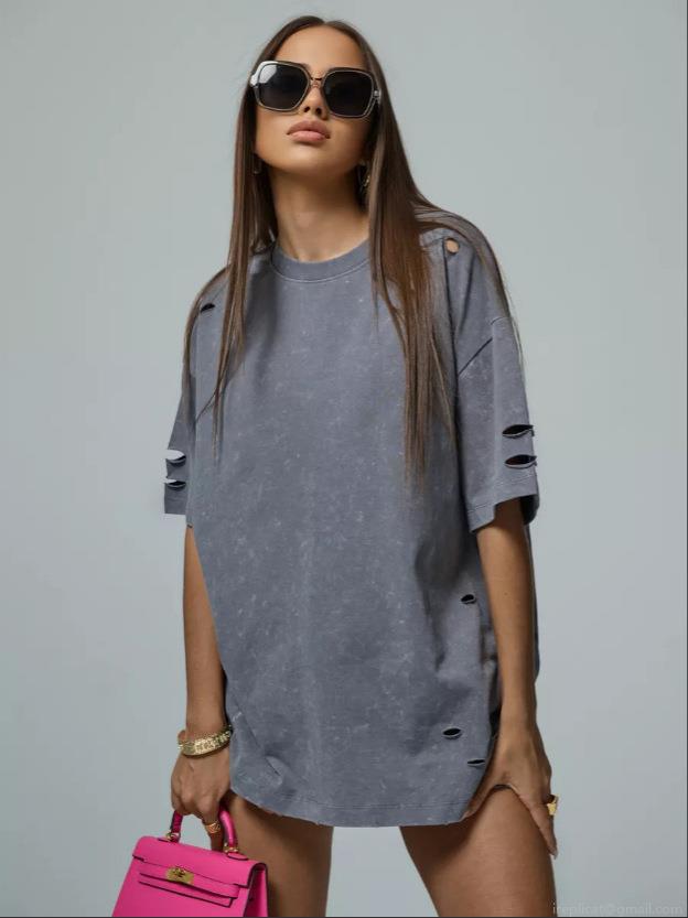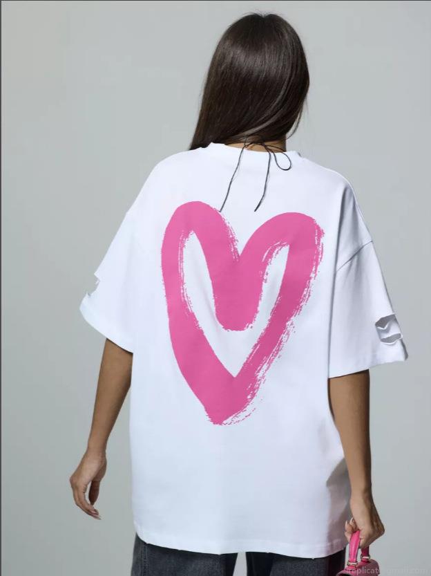 • Women's Oversized T-Shirt Acid Wash Distressed Hole Short Sleeve Top Pink Heart Print Streetwear Loose Knit Cotton Blend Tee For Women Casual Daily Wear