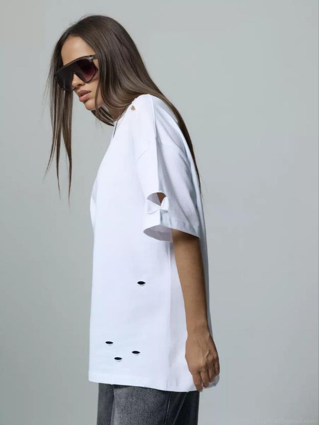 Graffiti, Hollow Out, Hole, Heart, Printing, Water-washed Distressed, Dropped Shoulders