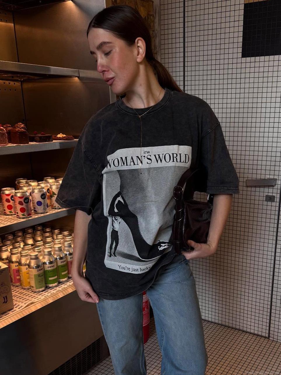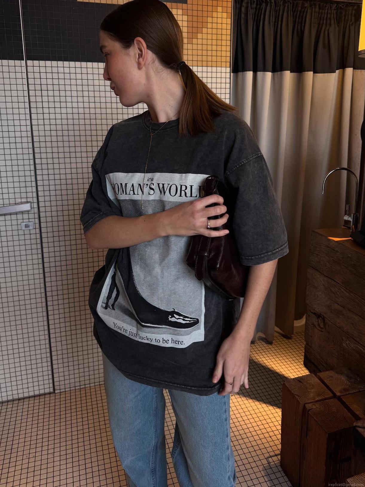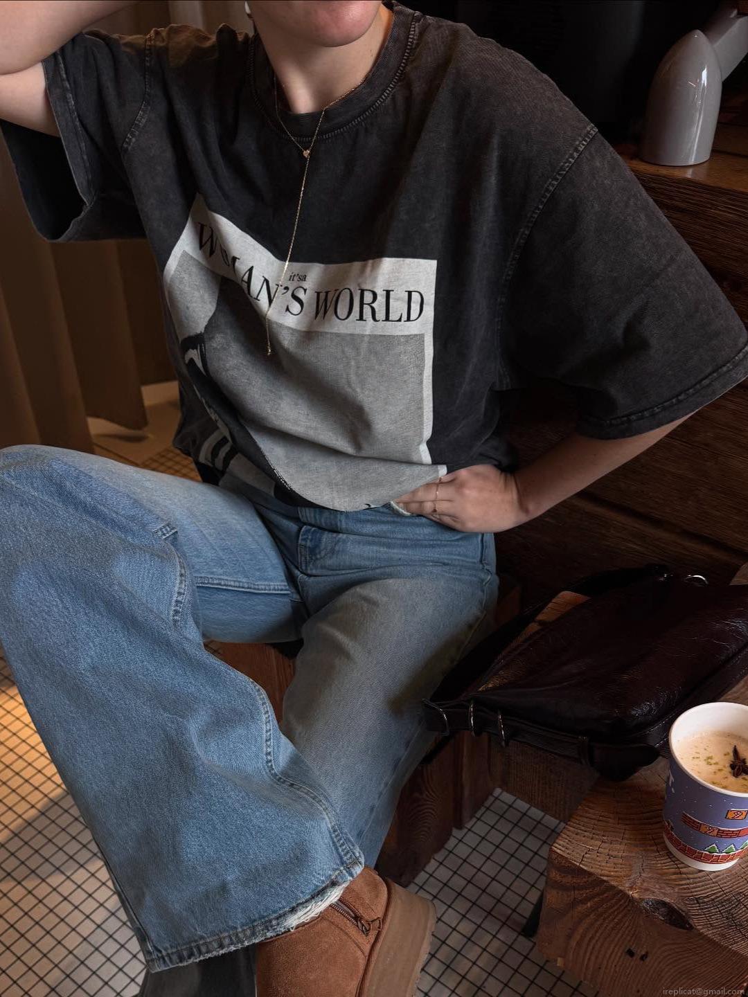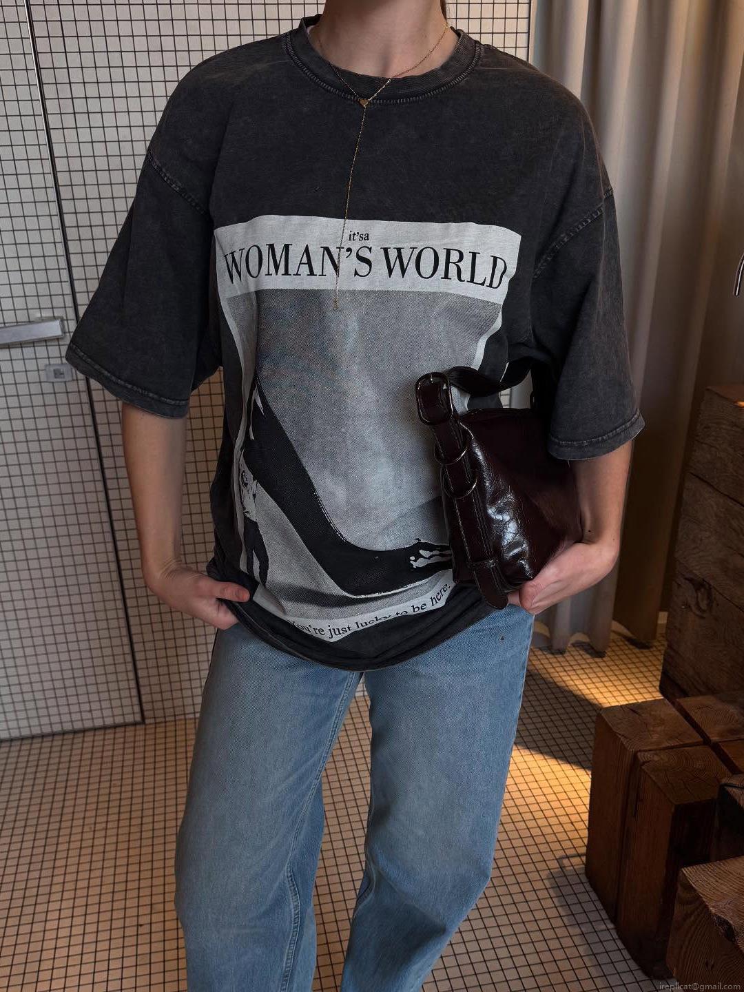 • Women's Oversized Washed Cotton T-Shirt Retro High Heel Letter Graphic Print Short Sleeve Distressed Streetwear Casual Tee Top