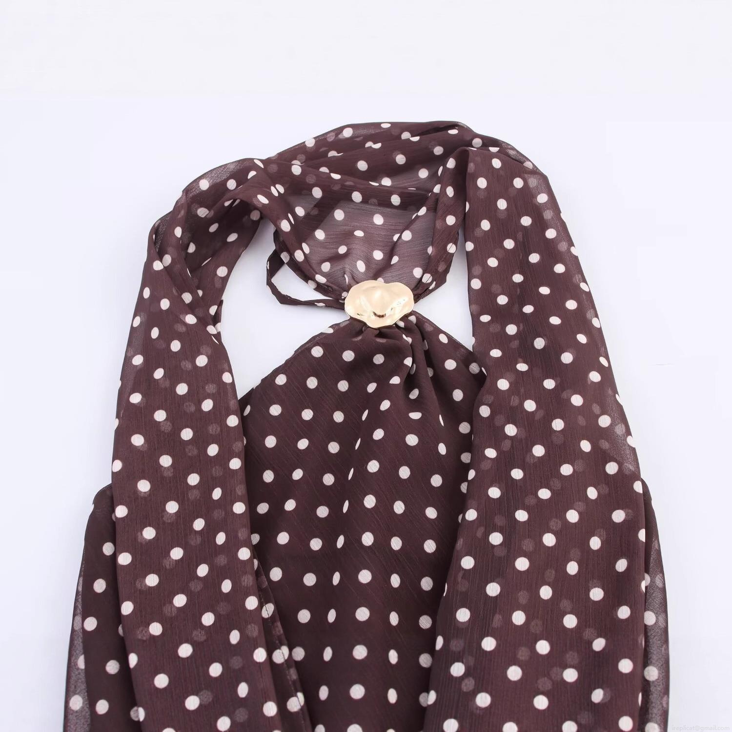 • Women's Polka Dot Halter Neck T-Shirt Sleeveless Chiffon Backless Top With Metal Heart Buckle European Street Style Casual Blouse For Daily Party