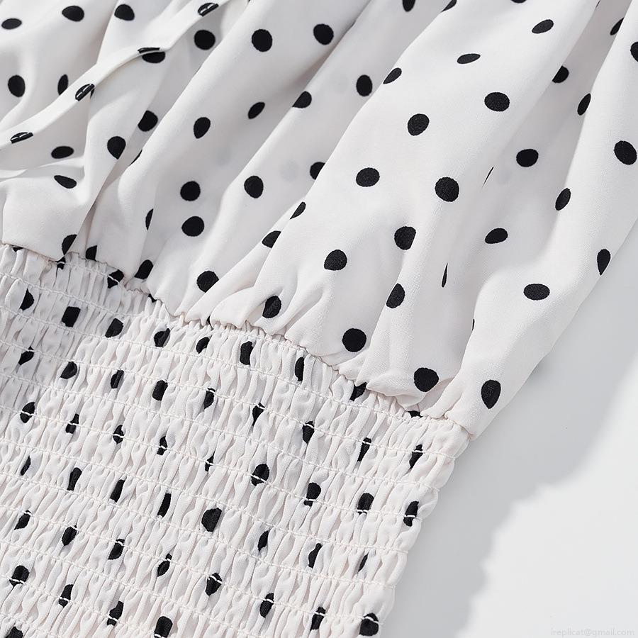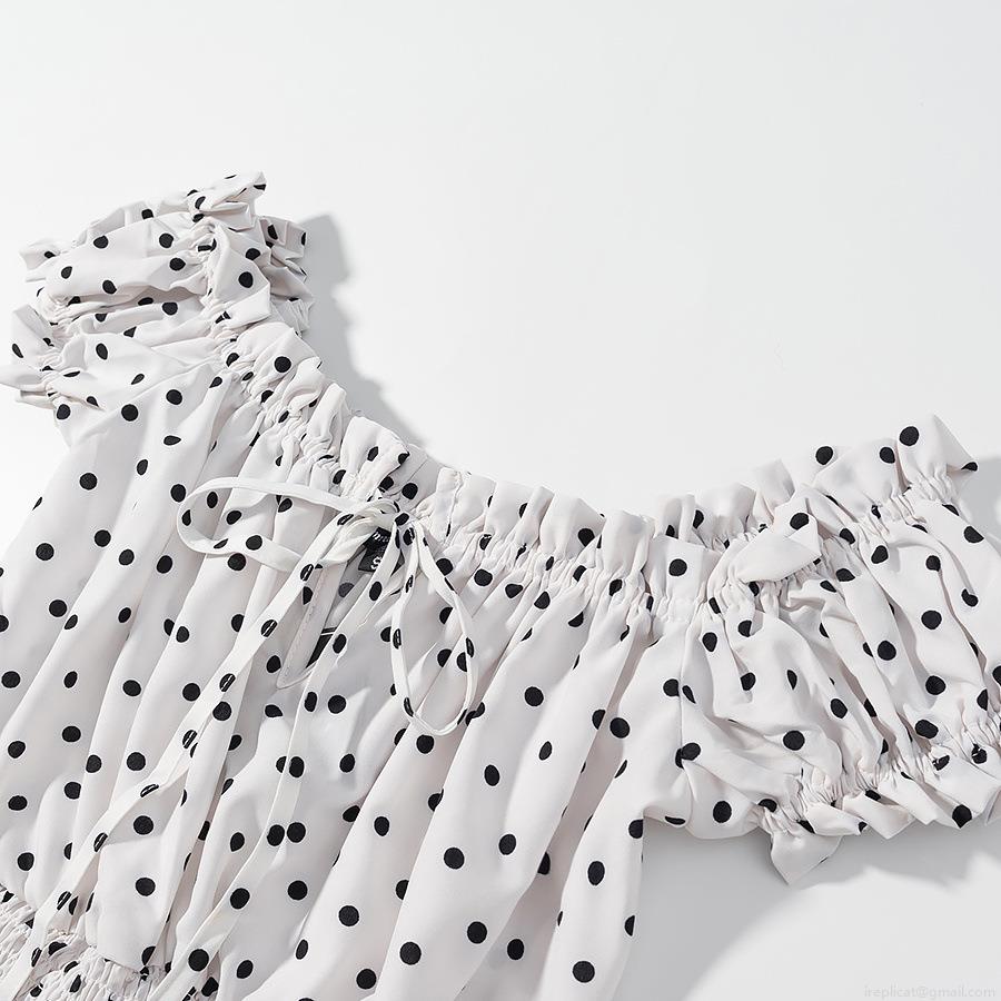 • Women's Polka Dot Square Neck Puff Sleeve T-Shirt Polyester Tie-Up Short Top Casual Summer Streetwear Street Style Ladies Short Blouse