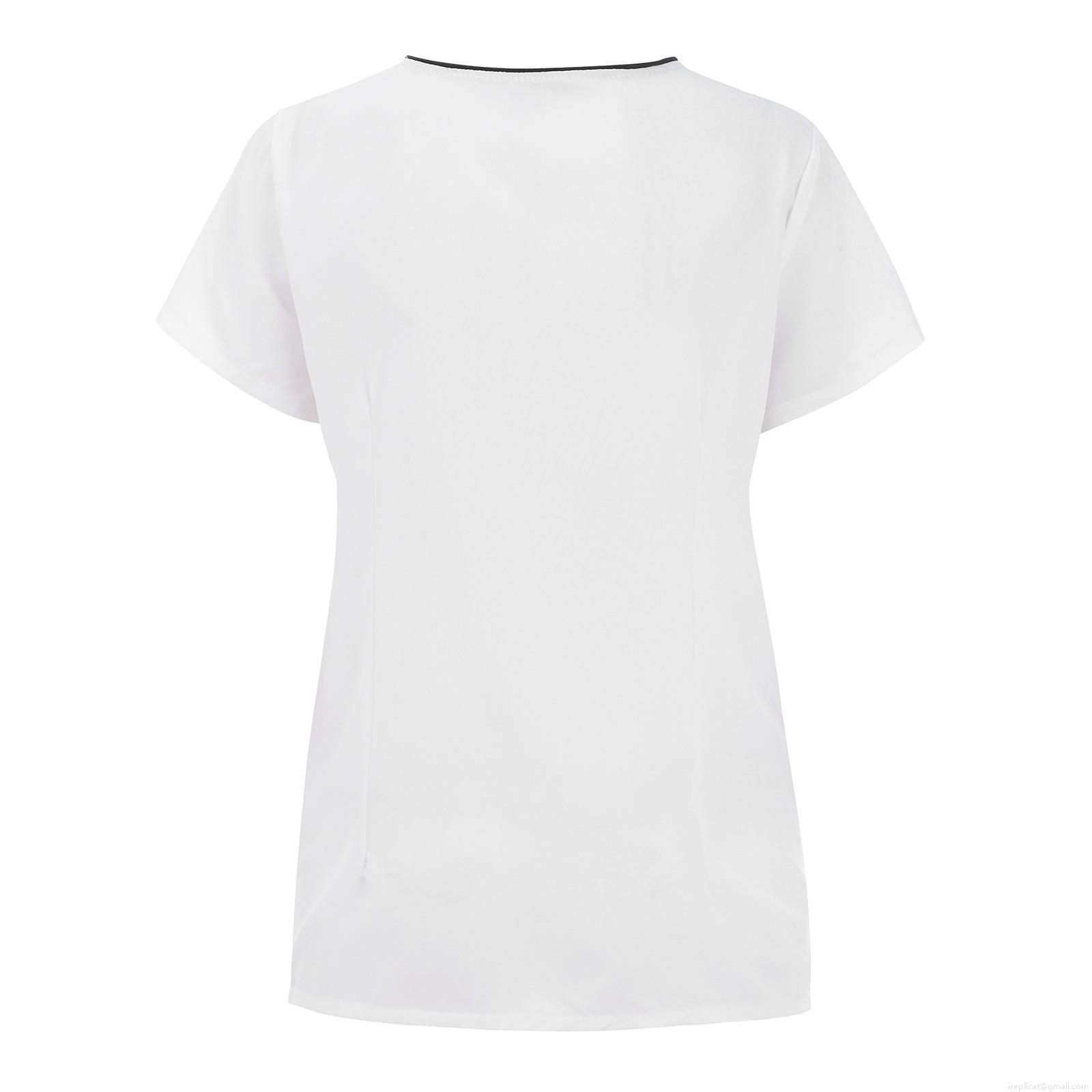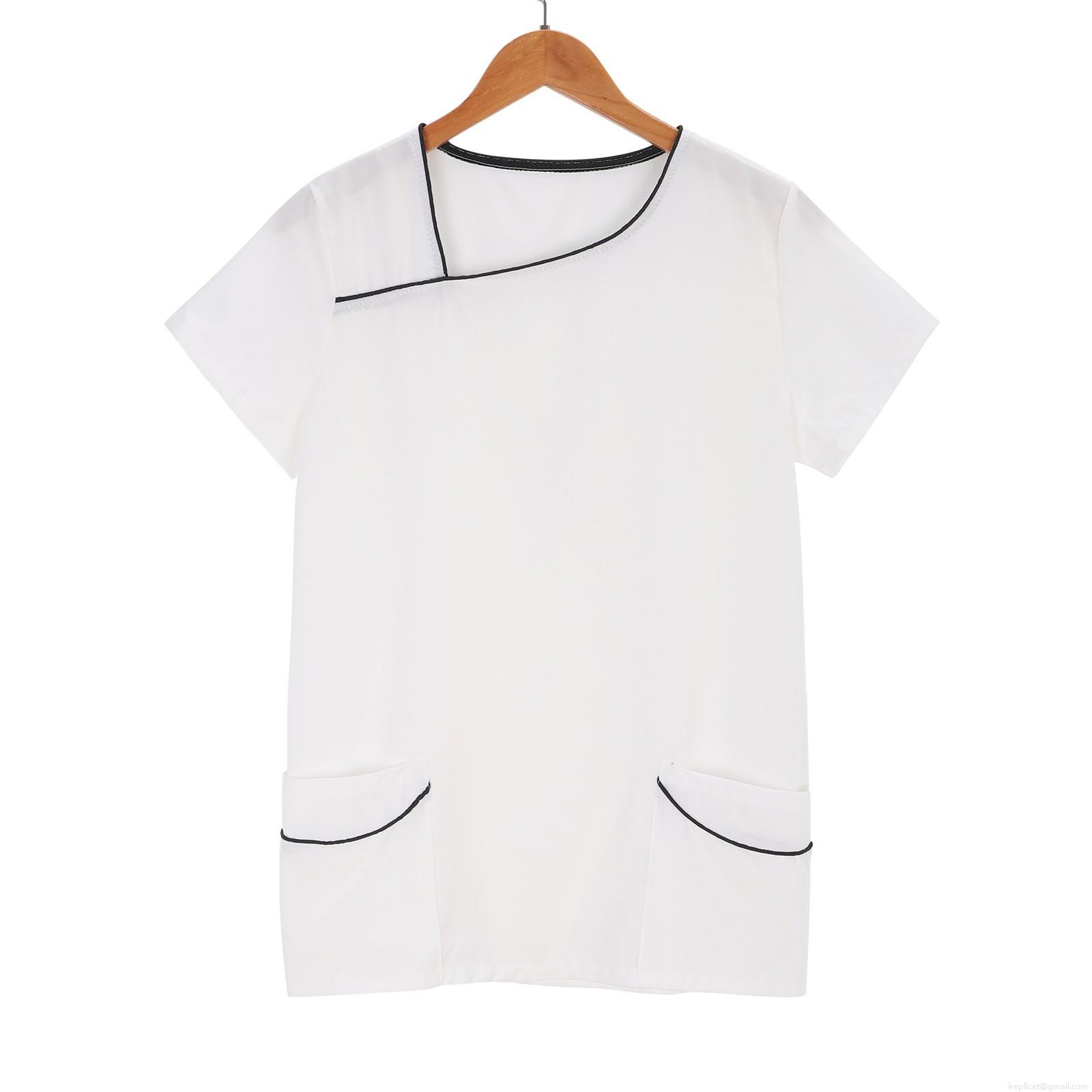 • Women's Professional Scrub Top Polyester Slanted Neck Short Sleeve Uniform For Beauty Salon Spa Clinic Elegant Workwear Top With Pockets