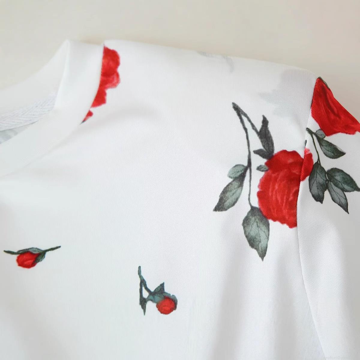 Women's Red Rose Floral Print T-Shirt Summer Short Sleeve Round Neck Pullover Top Casual Streetwear Polyester Crop Tee For Women