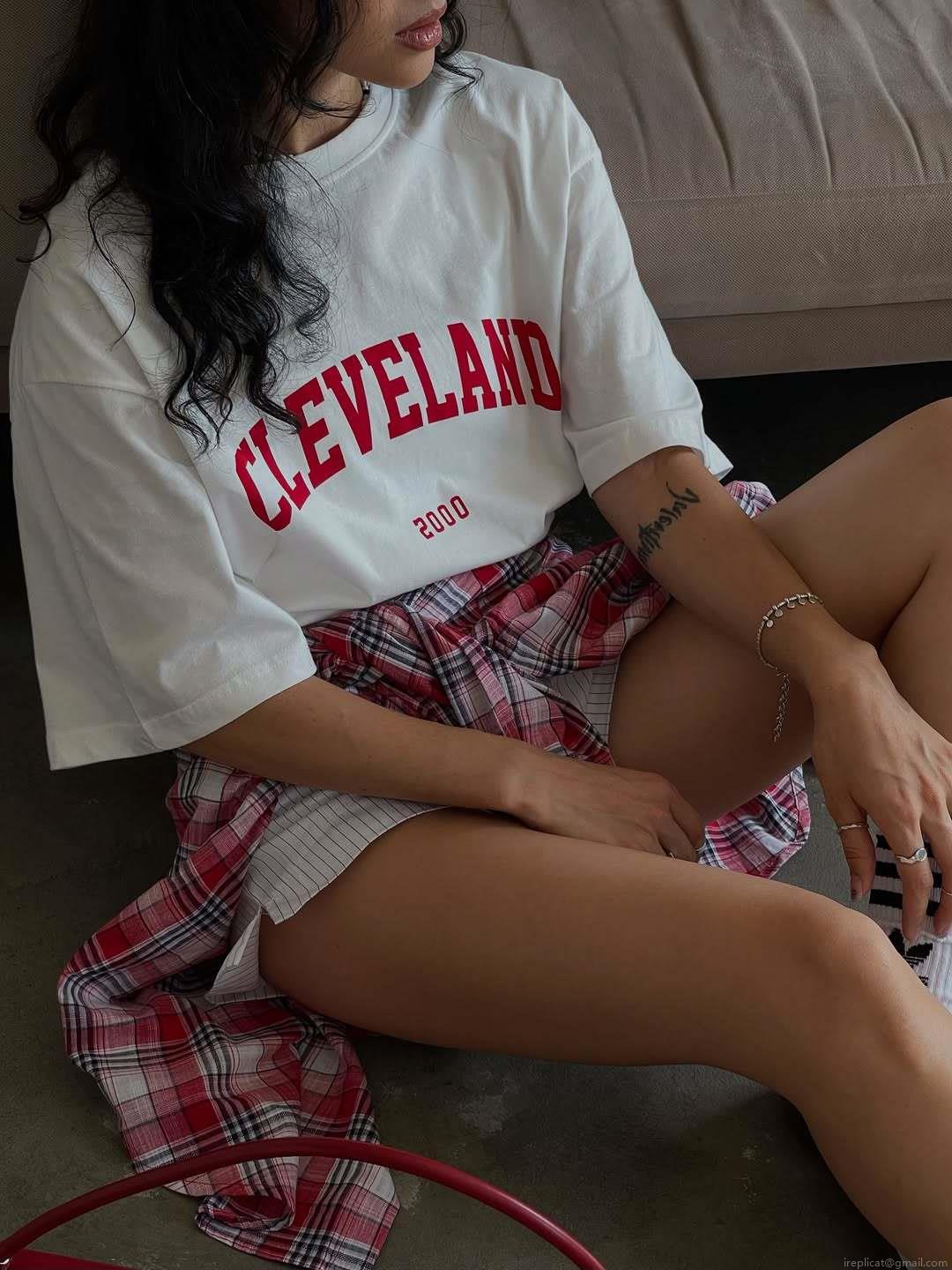 • Women's Retro American Streetwear Cleveland 2000 Letter Print T-Shirt 95% Cotton Oversized Drop Shoulder Summer Casual Short Sleeve Top